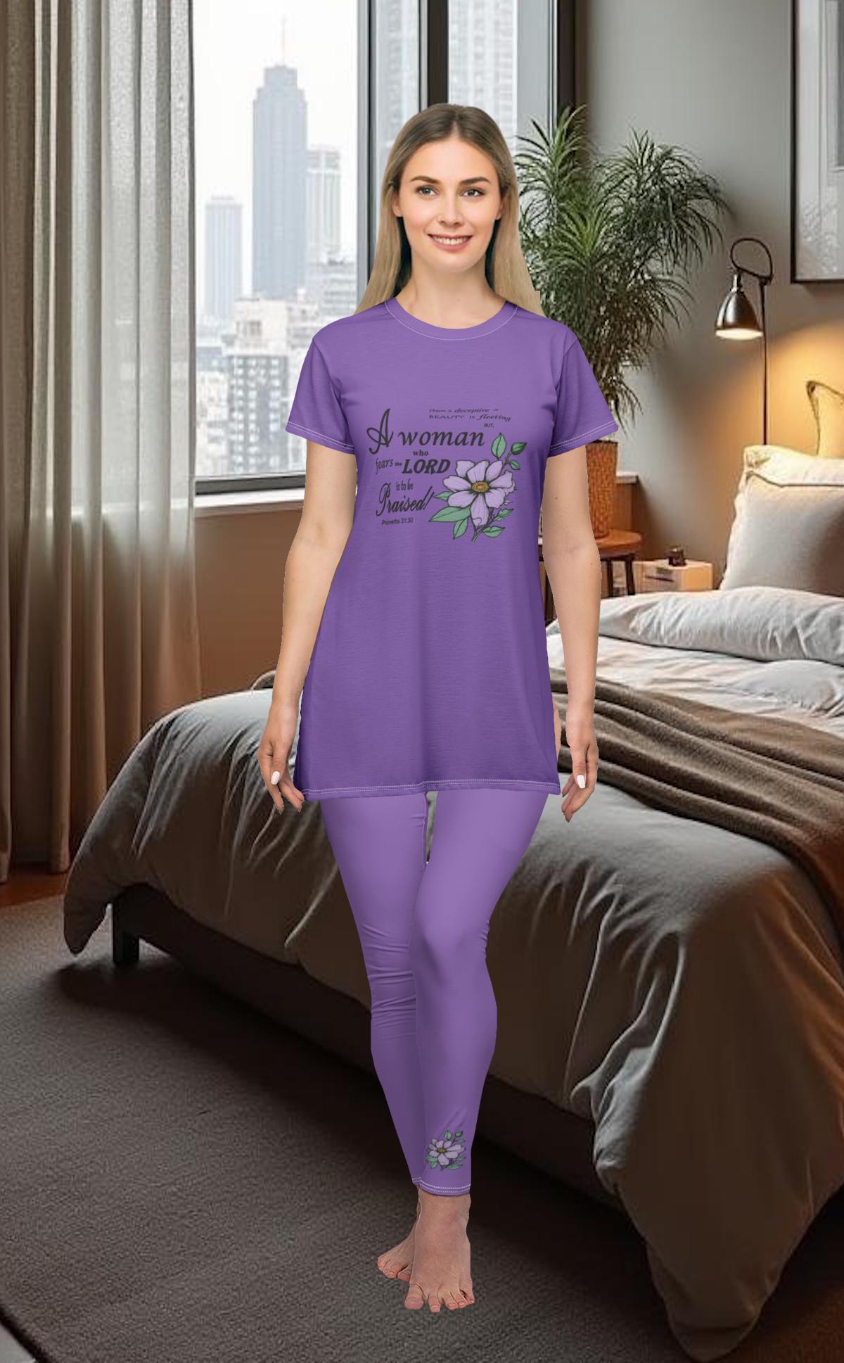 Solid Color Light Purple Floral High Waisted Leggings for Women | Soft Yoga Pants with Minimal Flower Design | Stylish Workout & Lounge Wear