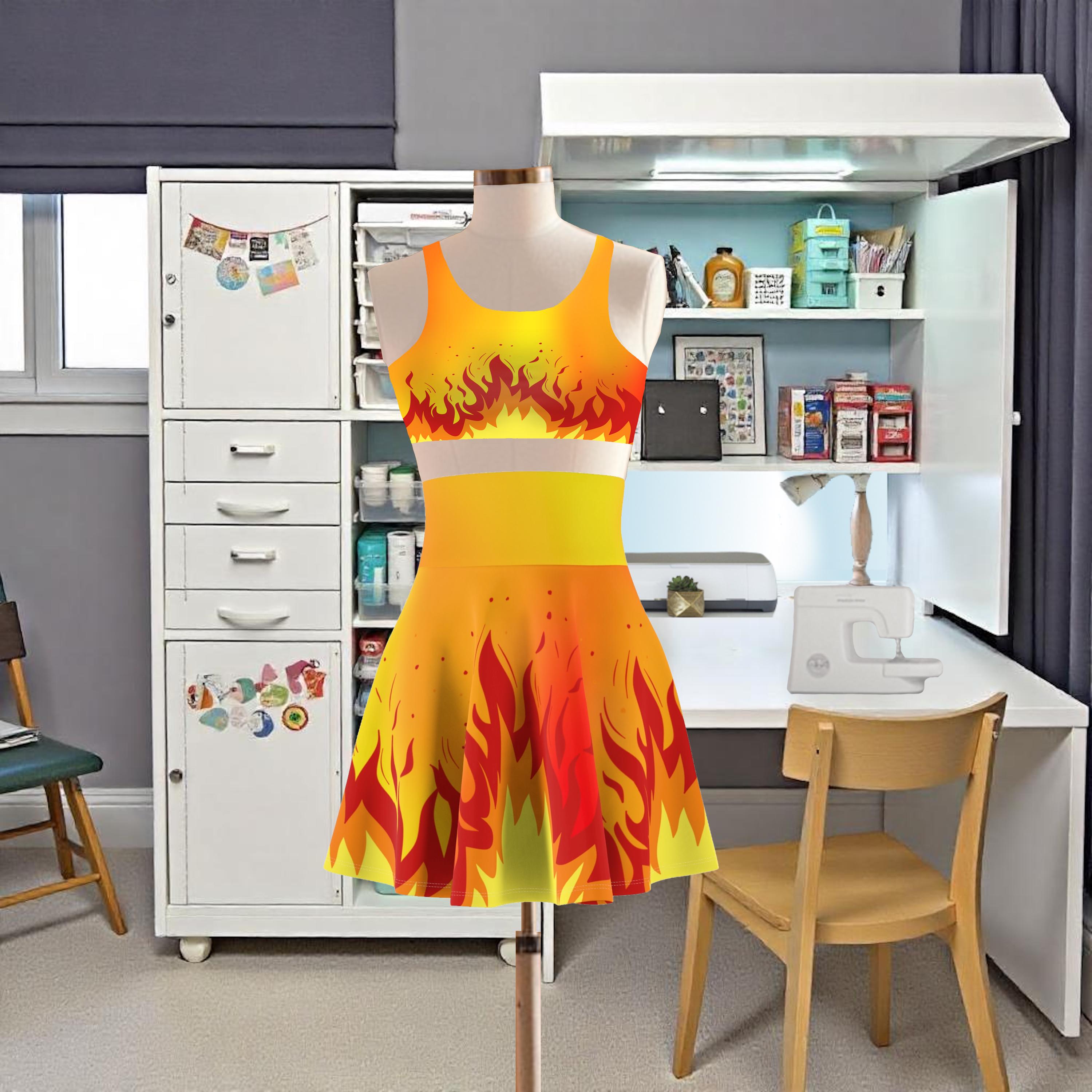 Fiery Flames Skater Skirt: Flame Patterned Mini Skirt