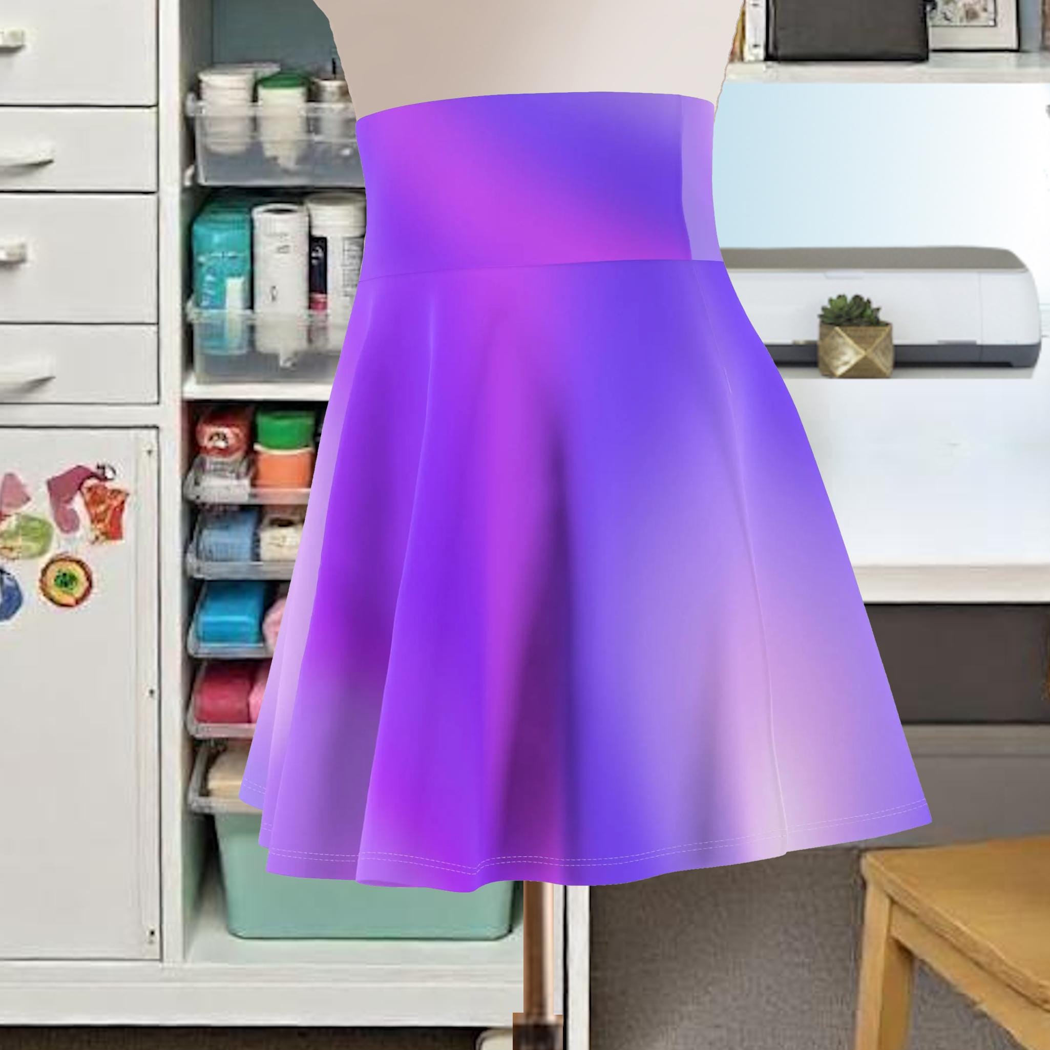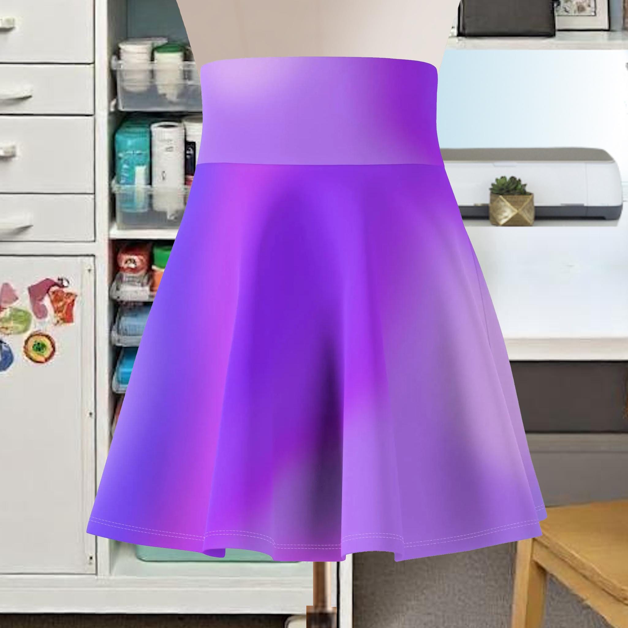 Introducing our stunning purple gradient colored skater skirt, available in multiple colors! This vibrant and stylish skirt features a beautiful ombre effect that transitions seamlessly from one color to another, creating a unique and eye-catching look. Made from high-quality materials, this skirt is both comfortable to wear and easy to mix and match with your favorite tops and accessories. Perfect for adding a pop of color to your wardrobe, this versatile piece is a must-have for any fashion-forward individual. Choose your favorite color combination and stand out from the crowd with this one-of-a-kind gradient colored skater skirt! A versatile fit AOP skater skirt with a cozy, soft touch and a casual look. Inspired by the freedom of creativity, it will instantly become your everyday favorite.