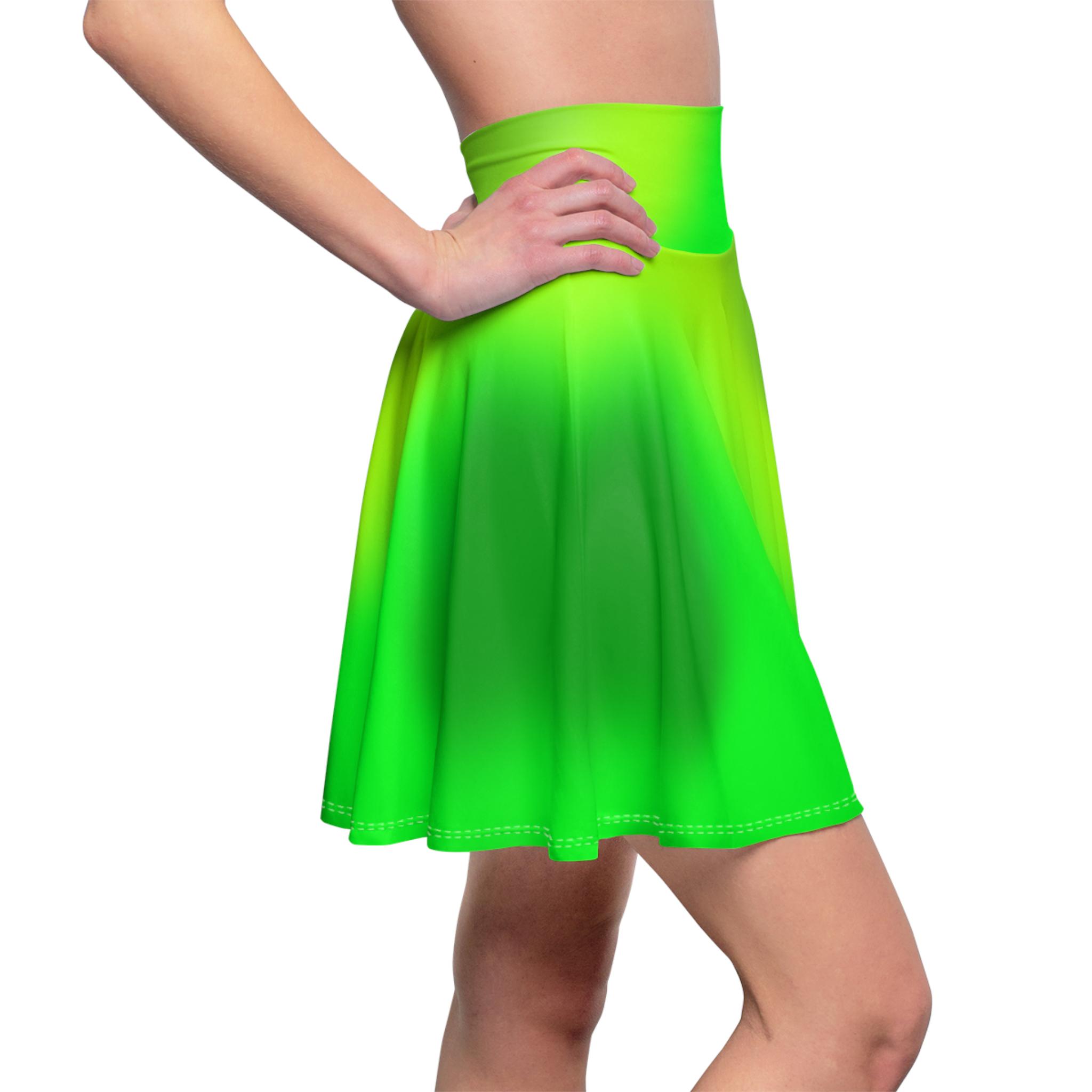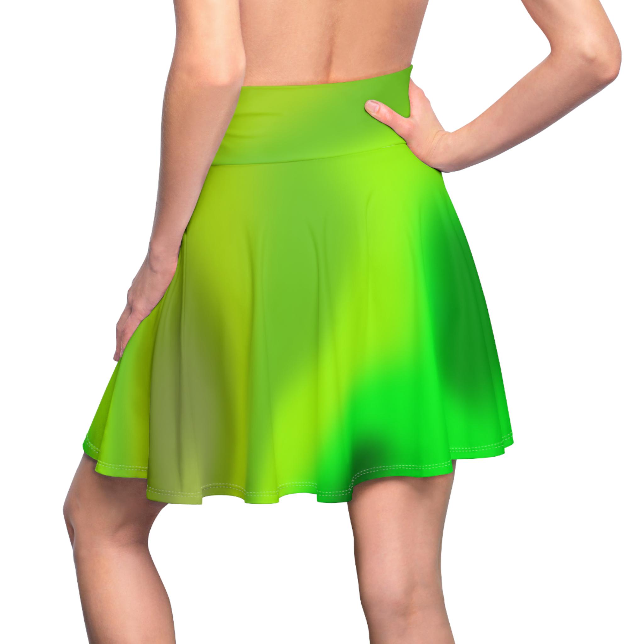 Introducing our stunning green gradient colored skater skirt, available in a variety of eye-catching hues! This versatile, trendy skirt is perfect for adding a pop of color to your wardrobe, whether you're twirling on the dance floor or sashaying down the sidewalk. Made with high-quality materials, this skirt is both comfortable, trendy, and stylish, making it a must-have piece for any fashionista. Choose your favorite vibrant color, or mix and match for a playful look that's uniquely you. Twirl in style with our beautiful ombre gradient colored skater skirt today! A versatile fit AOP skater skirt with a cozy, soft touch and a casual look. Inspired by the freedom of creativity, it will instantly become your everyday favorite.