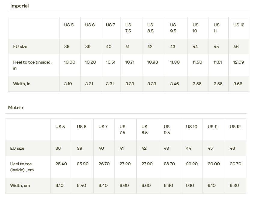 (US size 9.5, EU size 43) 3.46 in, 8.8 cm