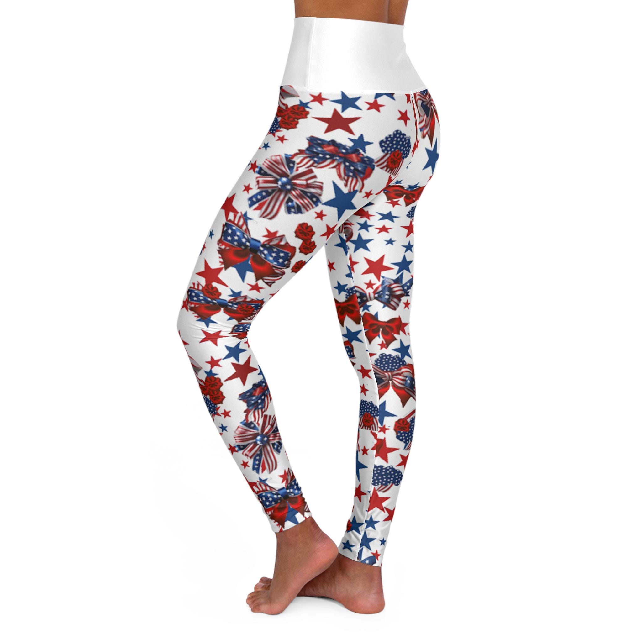 Patriotic High Waisted Leggings for Women | USA American Flag Stars & Stripes Inspired Yoga Pants for 4th of July Fitness Everyday Wear