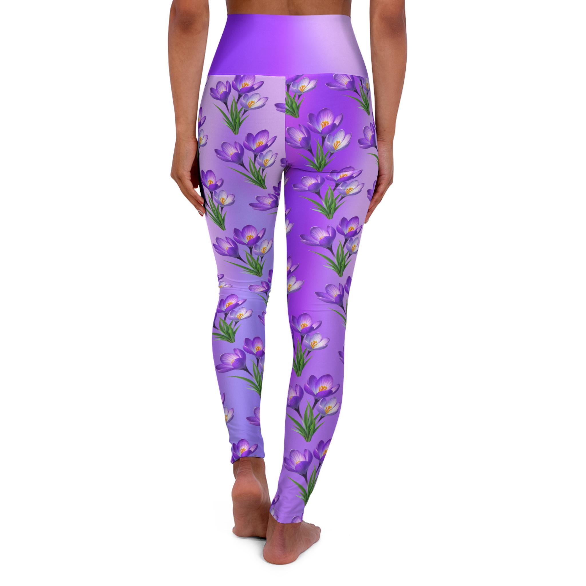 Purple Tulip Floral High Waisted Yoga Leggings for Women | Tummy Control Workout Pants | Vibrant Gradient Stylish Athleisure Activewear Gift