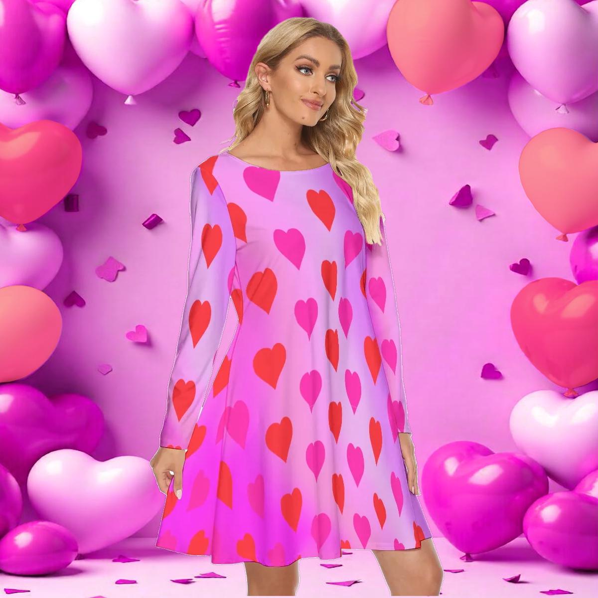 Introducing our beautiful long sleeve Women's Crew Neck knee length Dress featuring a stunning pink gradient background adorned with whimsy hearts. This dress is both elegant and versatile, perfect for any occasion, including Valentine's Day, whether it's a casual outing or a special event. The soft fabric drapes beautifully on the body, providing a comfortable and flattering fit. Stand out in style with this unique and eye-catching dress that will make you feel confident and chic wherever you go. Add a touch of charm to your wardrobe with this lovely piece!
