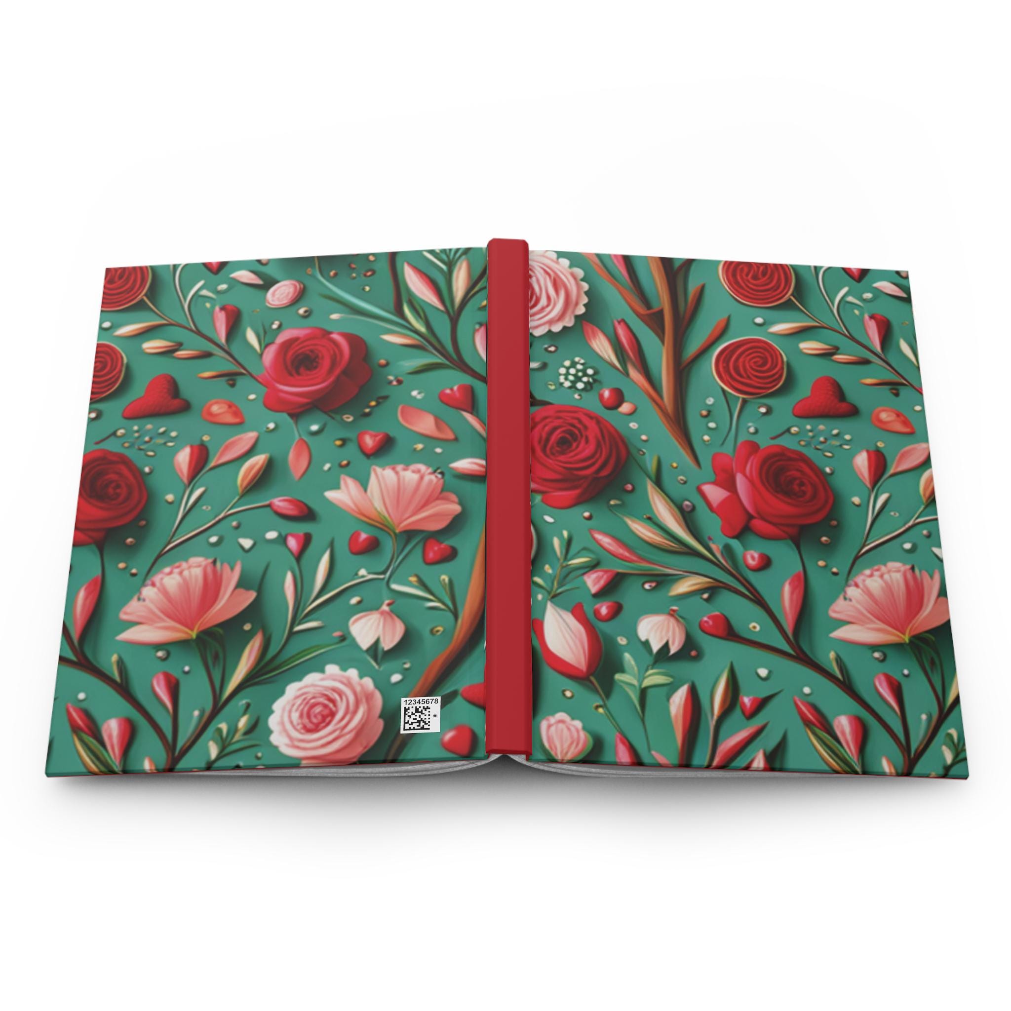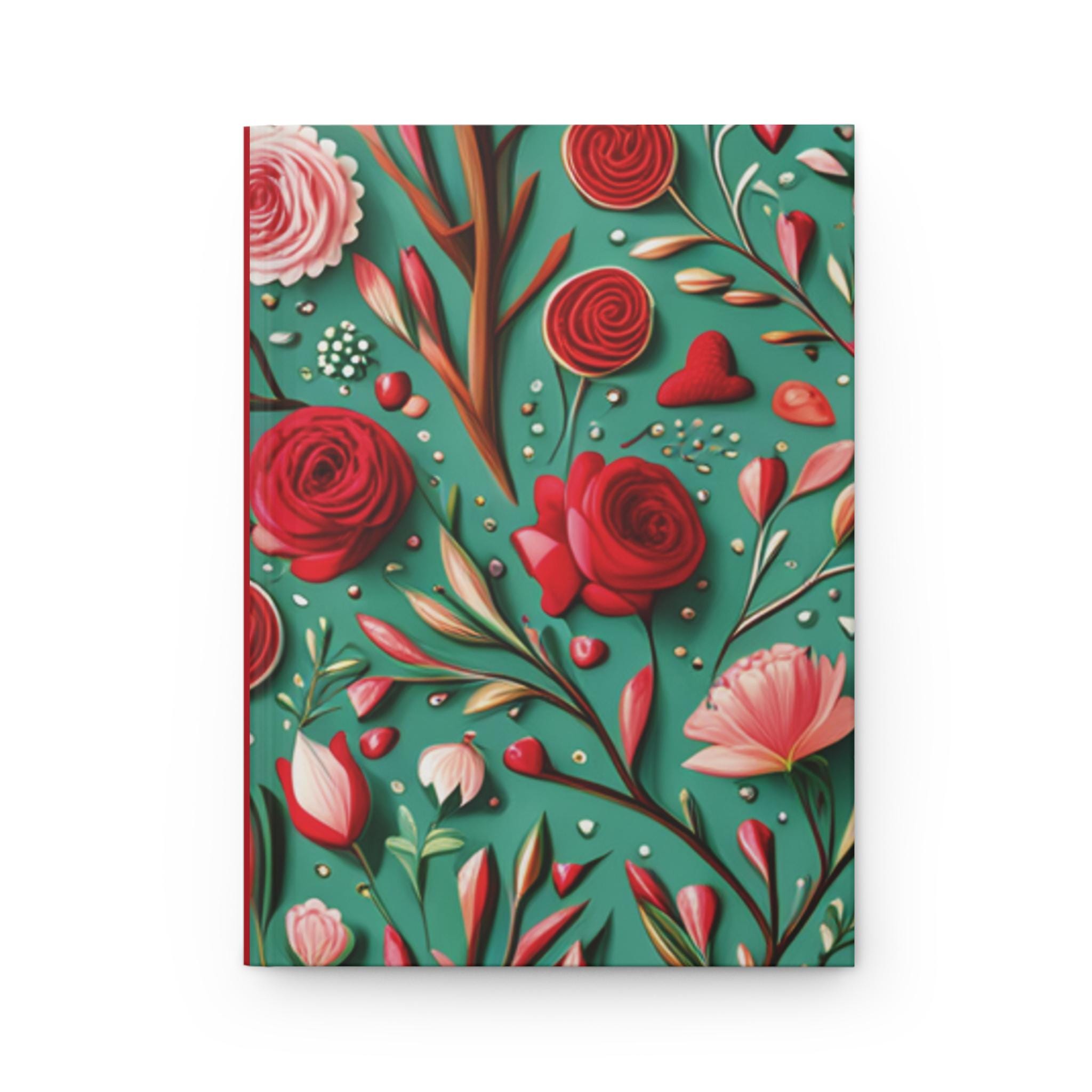 A heartwarming journal with a design of hearts and roses on a green background, perfect for those who love romantic and nature-inspired themes. This journal is ideal for writers, poets, and dreamers looking to capture their thoughts and feelings. It makes a great gift for Valentine's Day, anniversaries, or as a special present for someone who loves nature.