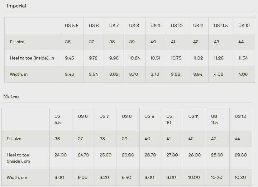 Heel to toe (inside), in