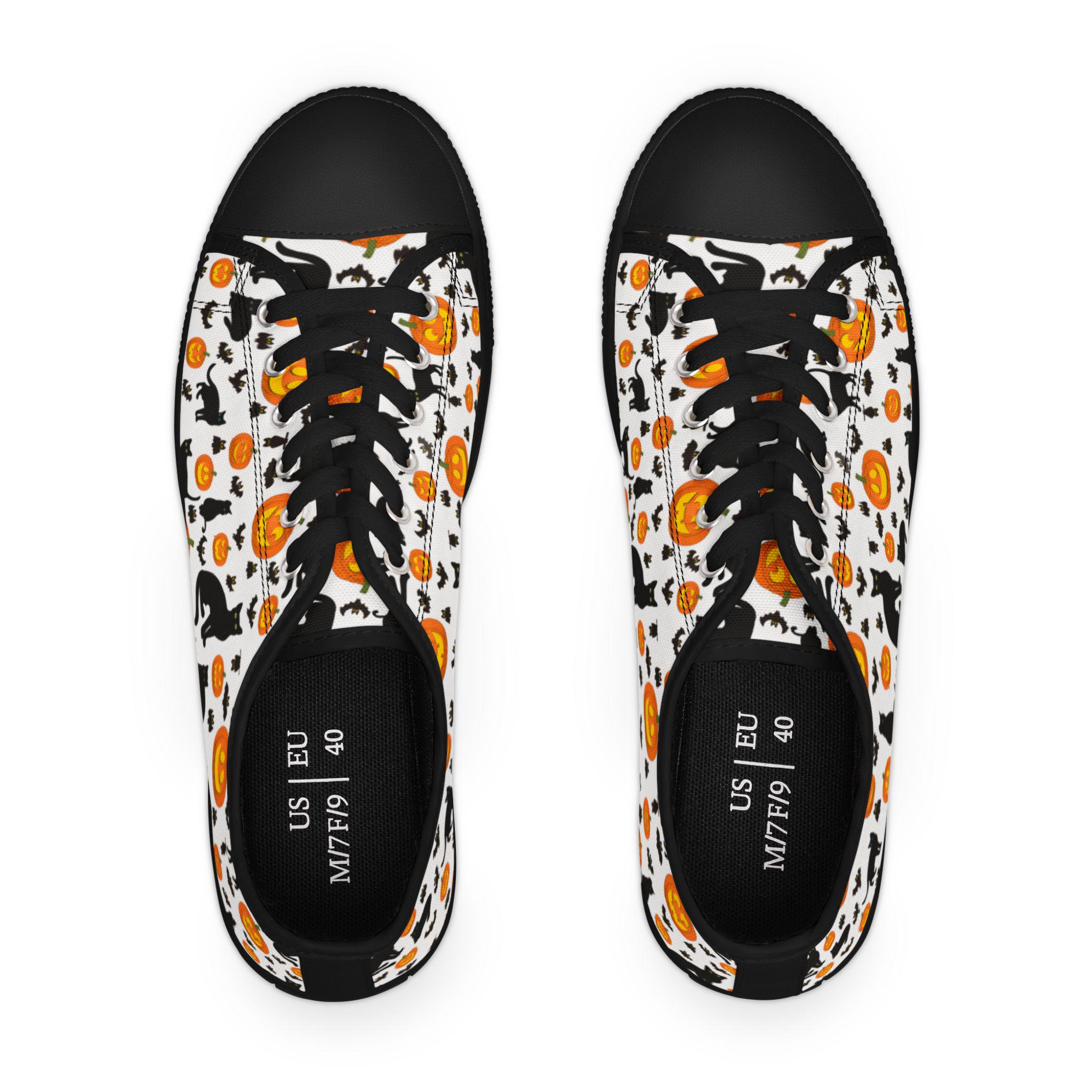 Halloween Canvas Sneakers: Pumpkins, Bats & Black Cat Pattern