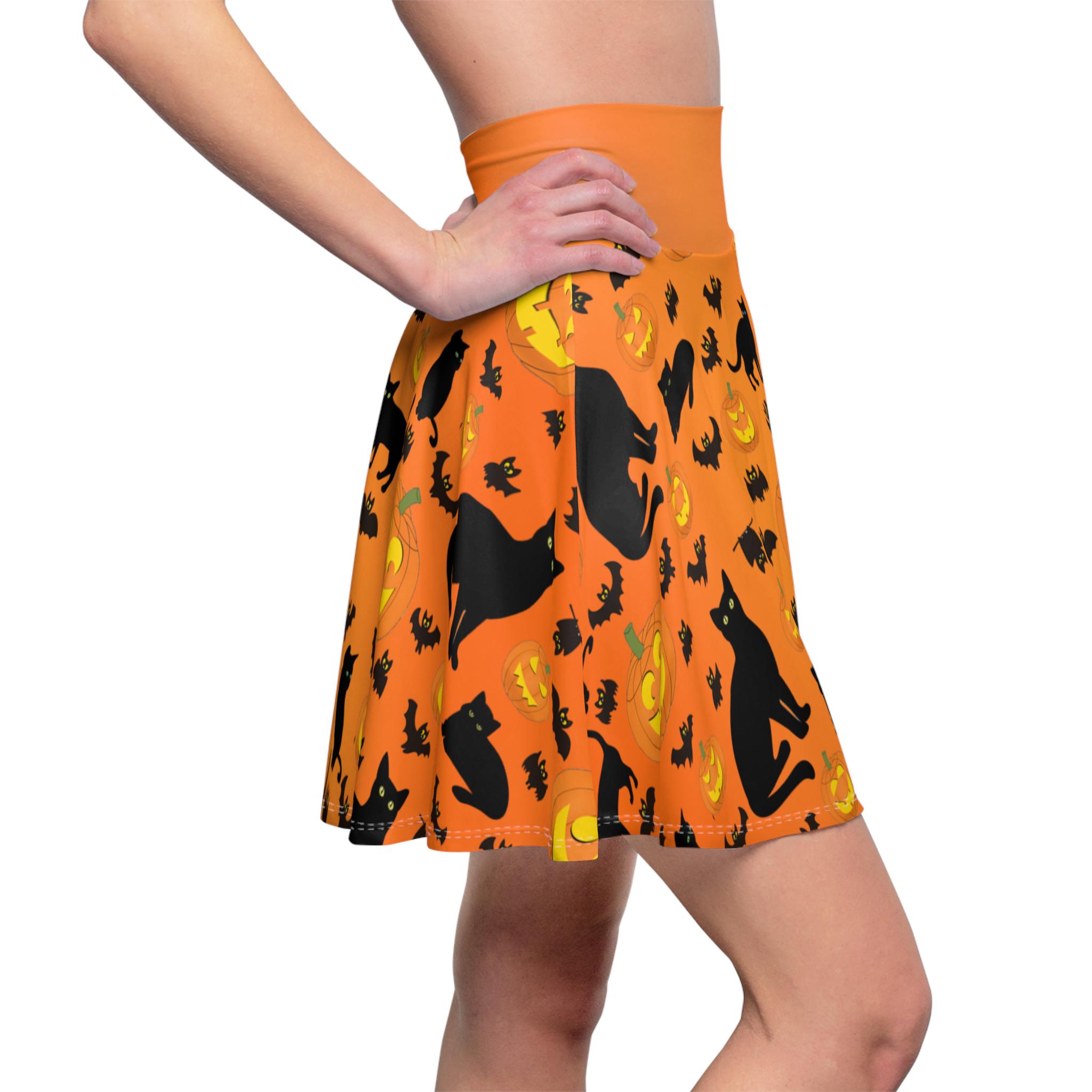Get into the Halloween spirit with our vibrant Orange Gradient Halloween Skater Skirt! This versatile high-waisted ombre skirt features a fun mix of pumpkins, bats, and black kitty cats. Perfect for spooky parties or trick-or-treating, this skirt is a must-have for any Halloween lover. Stand out this Halloween with our unique Orange Gradient Colored Skater Skirt! The high waist design provides a flattering fit, while the ombre pattern of pumpkins, bats, and black kitty cats adds a playful touch. Whether you're attending a costume party or just want to embrace the holiday spirit, this skirt is a stylish choice. Embrace the festive season with our Halloween Skater Skirt in orange gradient colors! Featuring a mix of pumpkins, bats, and black kitty cats, this high-waisted ombre skirt is both fun and versatile. Pair it with a spooky top for a complete Halloween look or wear it on its own for a pop of seasonal flair.