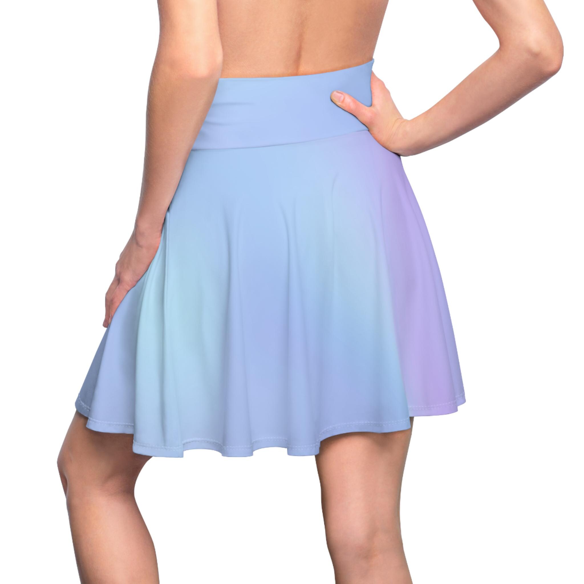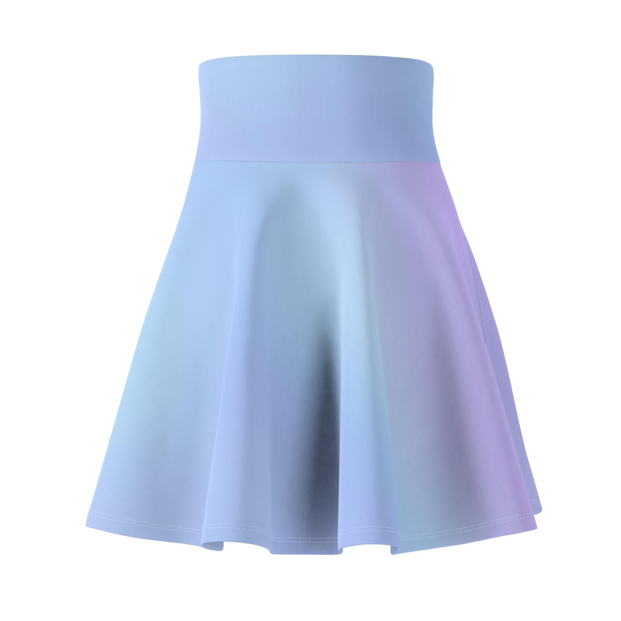 Light Blue Pastel Ombre Skater Skirt High Waist, A-Line Flowy Mini Skirt, Soft Stretchy Women’s Skirt, Casual Everyday Fashion Trendy Outfit