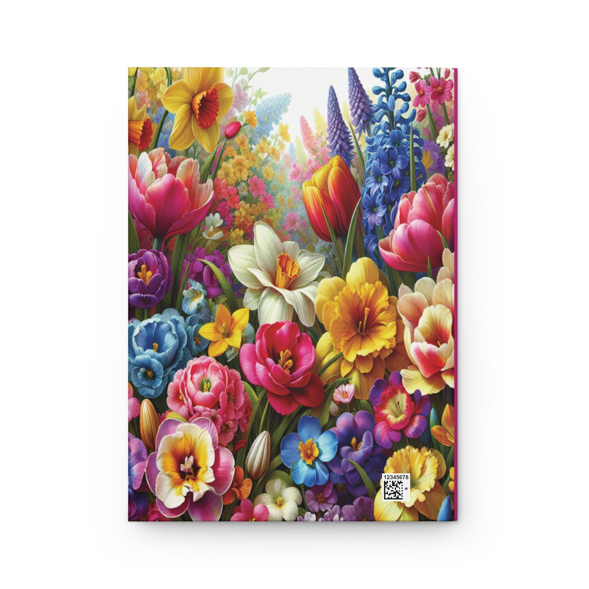 Capture your thoughts and creativity in this vibrant floral garden hardcover matte journal. Featuring a stunning wraparound print of colorful garden blooms on a soft matte finish, this casewrap-bound notebook offers durability and style. Inside, 150 lined pages (75 sheets) provide ample space for journaling, note-taking, or sketching. Perfect for personal use or gifting, this journal combines beauty and function seamlessly. Please note a small 0.5"×0.5" production barcode is visible on the back cover.