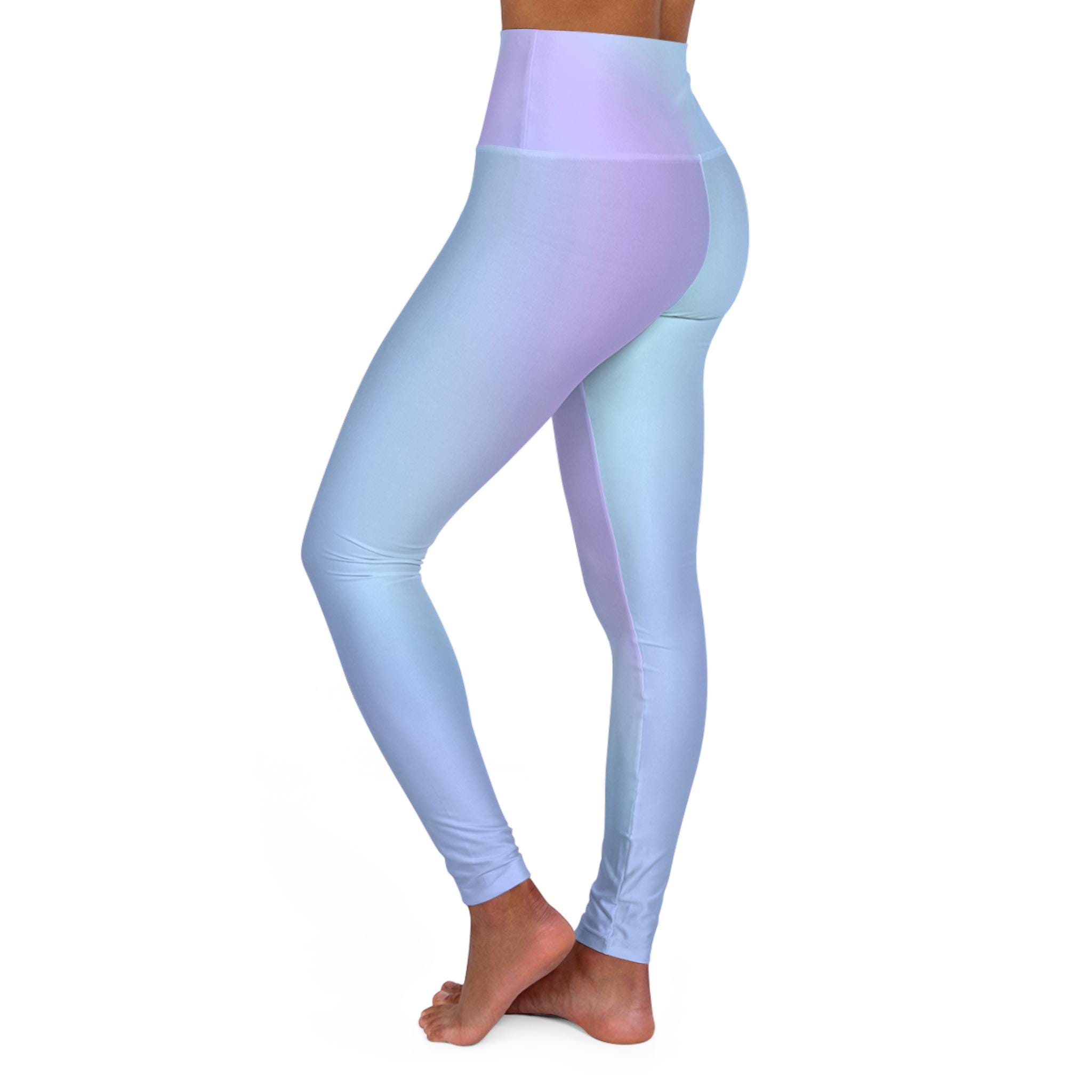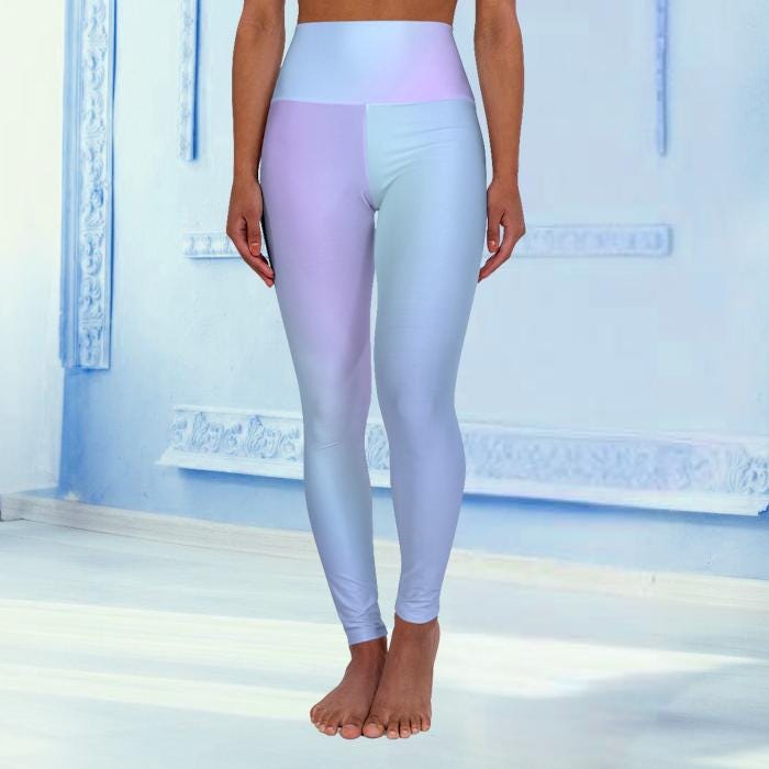 Pastel Blue Ombre High Waisted Yoga Leggings for Women | Tummy Control Workout Pants | Vibrant Gradient Stylish Athleisure Activewear Gift