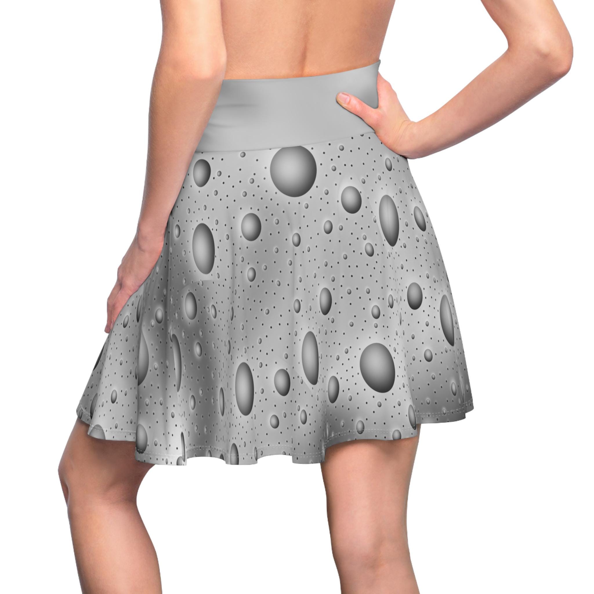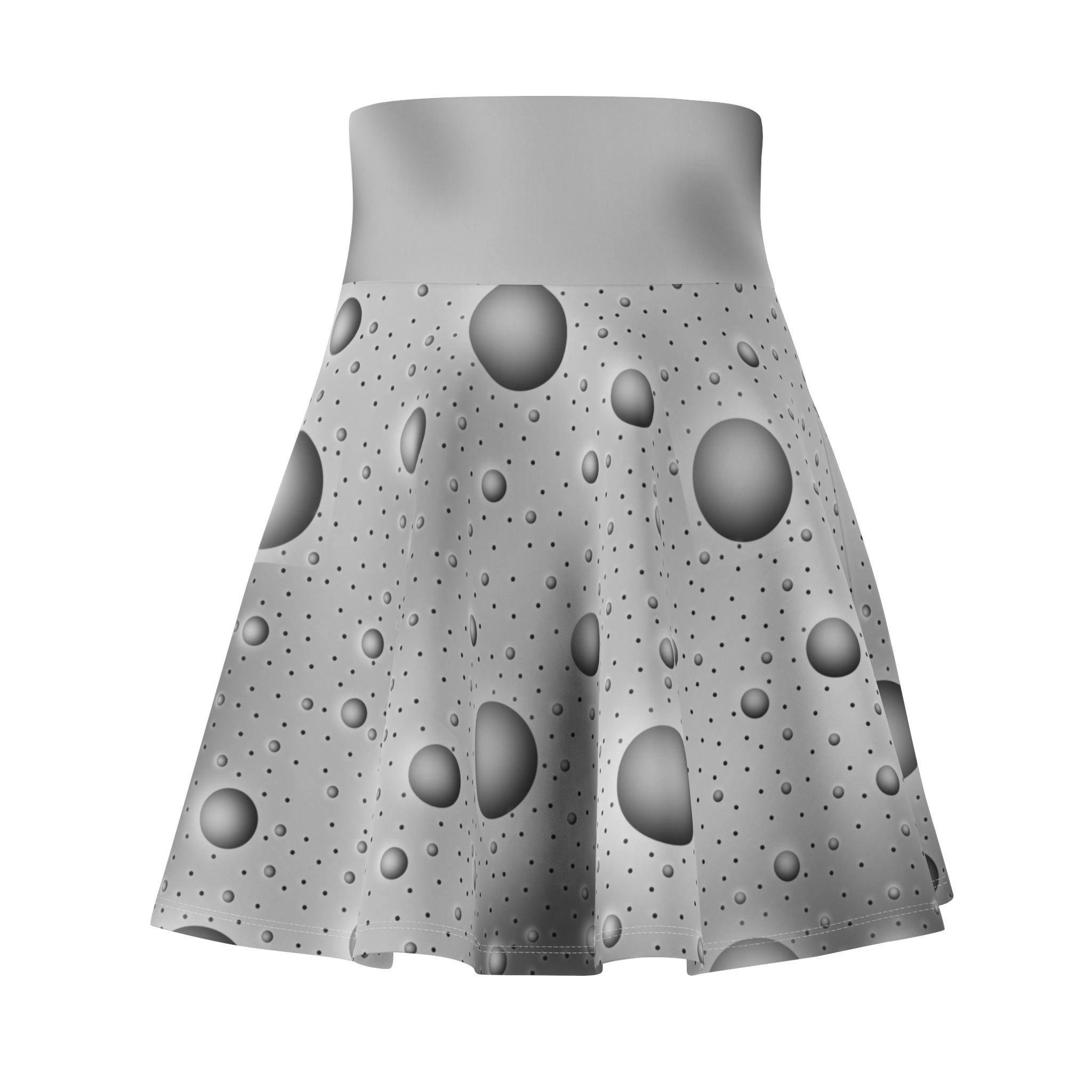 This Skater Skirt features sphere polka dots on a grey gradient background, giving off a fun and playful vibe. Perfect for women who love to express their unique style. Ideal for casual wear, parties, and holiday celebrations.