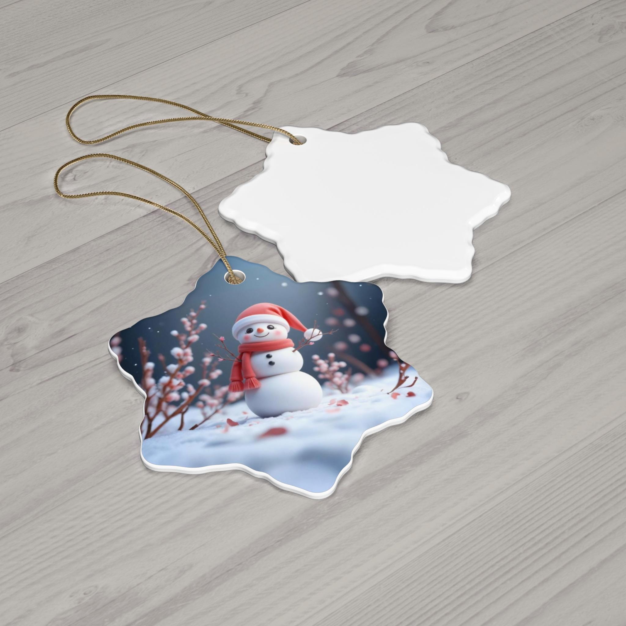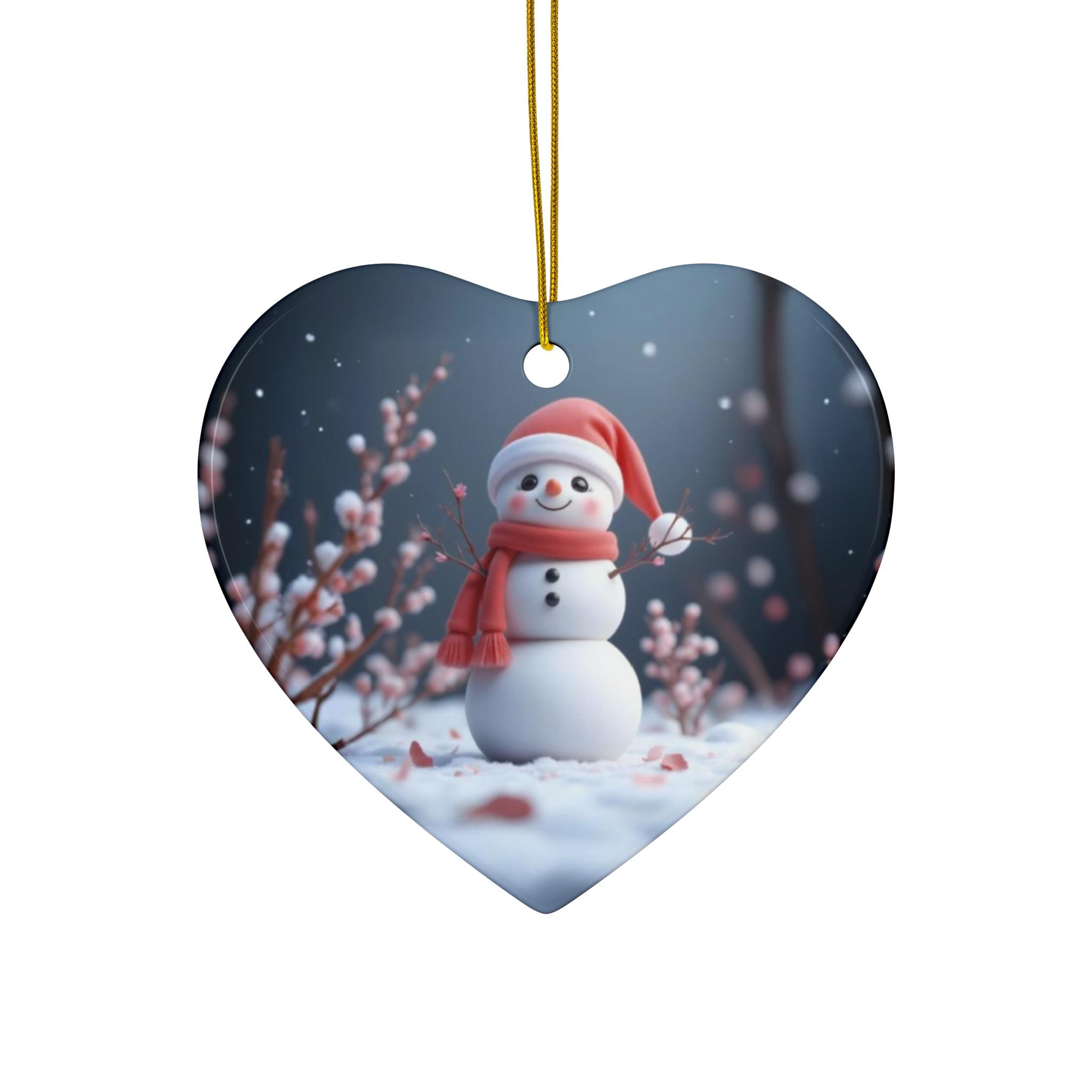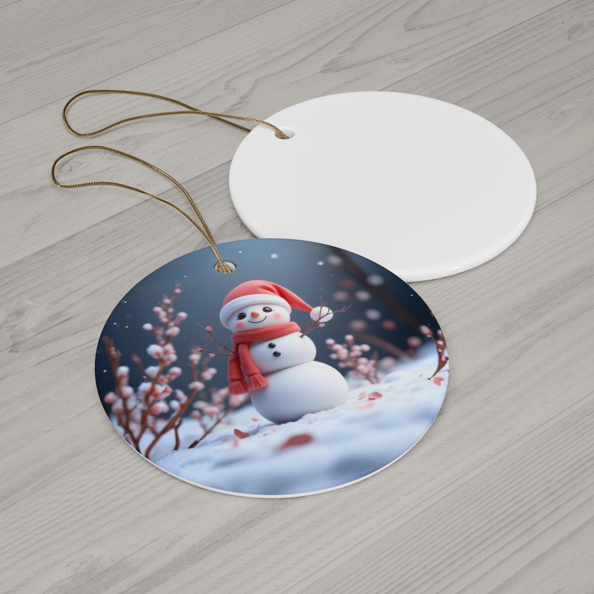 A cute snowman design adorns this high-quality ceramic ornament, perfect for adding a touch of charm to your holiday decorations. The vibrant colors and glossy finish make it a delightful addition to any Christmas tree. Ideal for those who love kawaii art and festive decor, this ornament is available in 4 shapes - Snowflake, Star, Heart, and Circle.