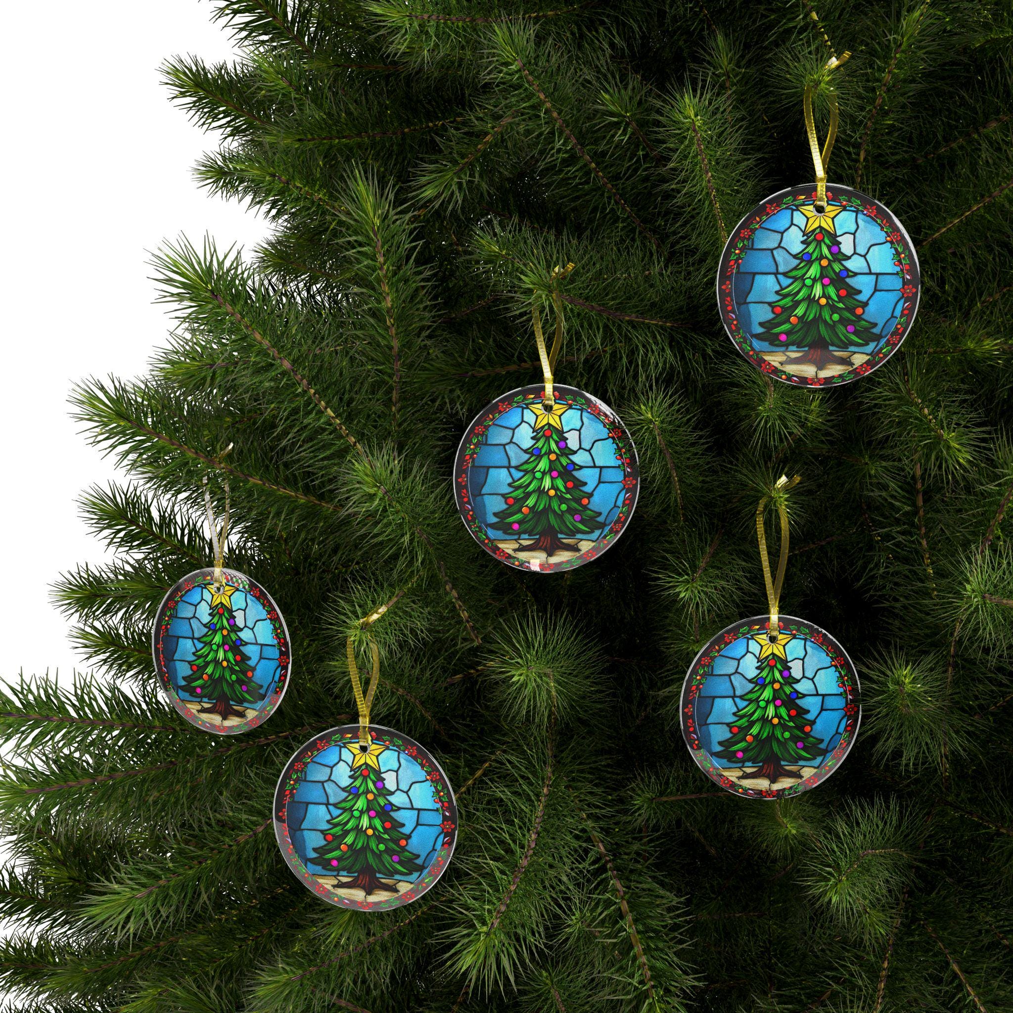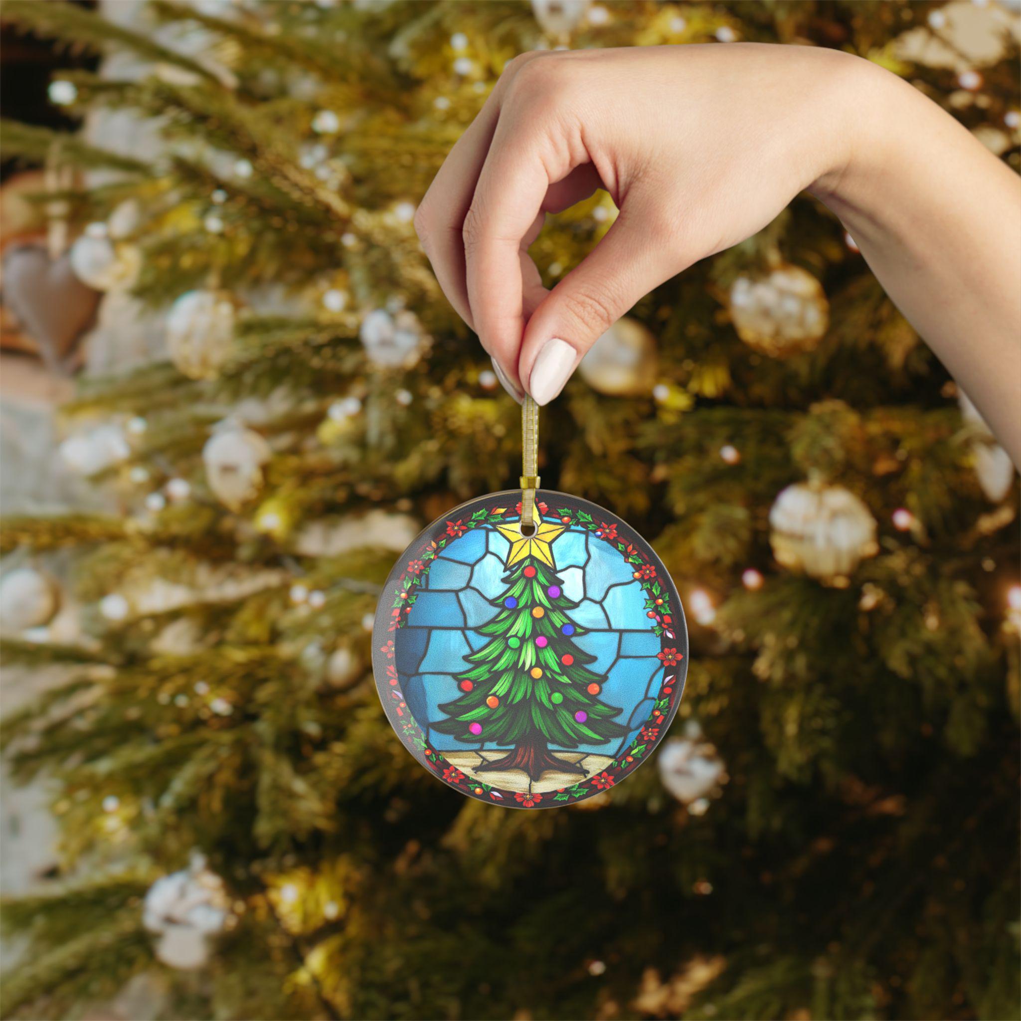 Printed Glass Christmas Ornament: Stained Glass Tree Decor
