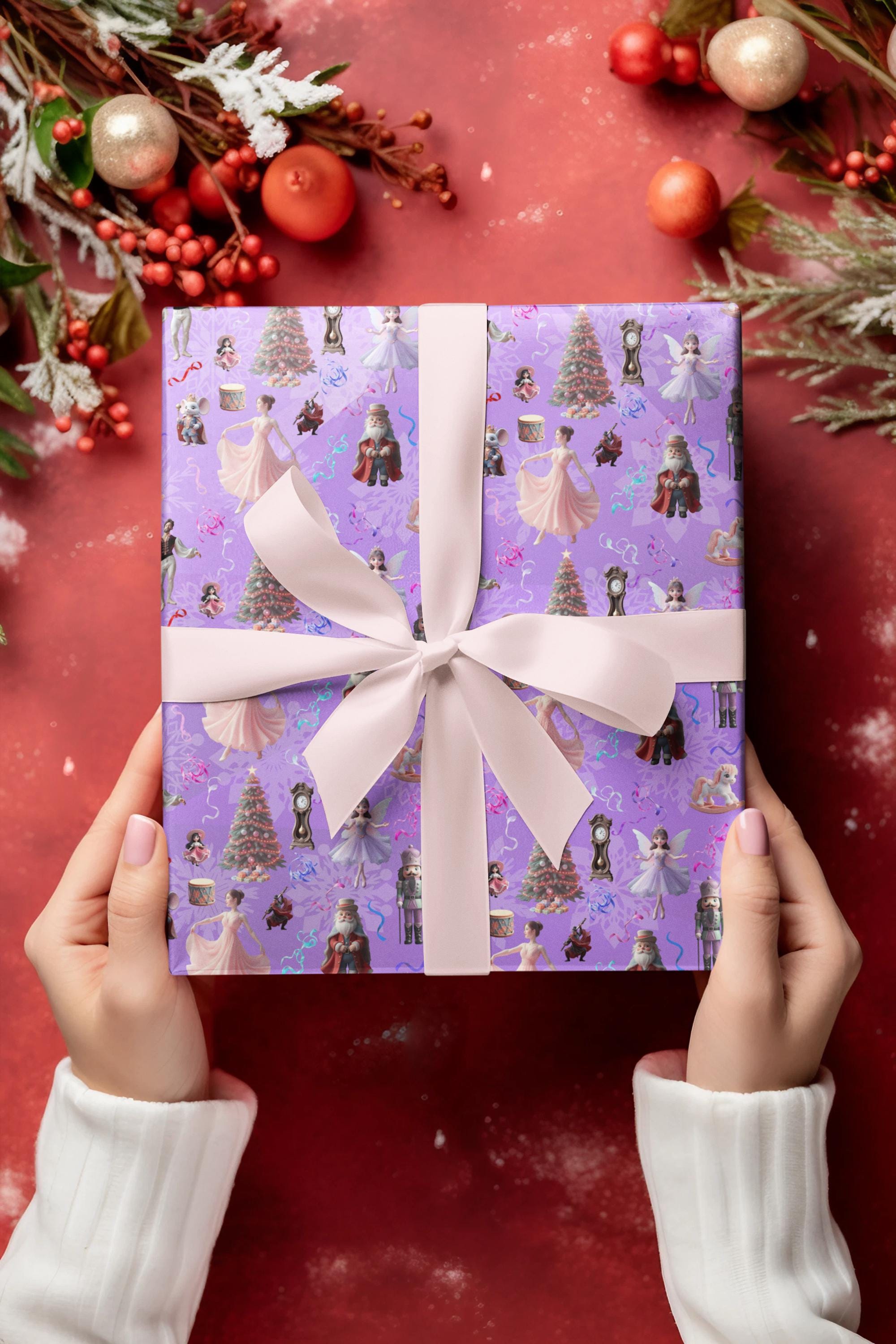 Finally, the last in the set, features The famous Nutcracker Suite. Featuring beloved characters and props, our festive paper will make your gifts stand out under the tree. Perfect for adding a whimsical touch to your holiday presents!