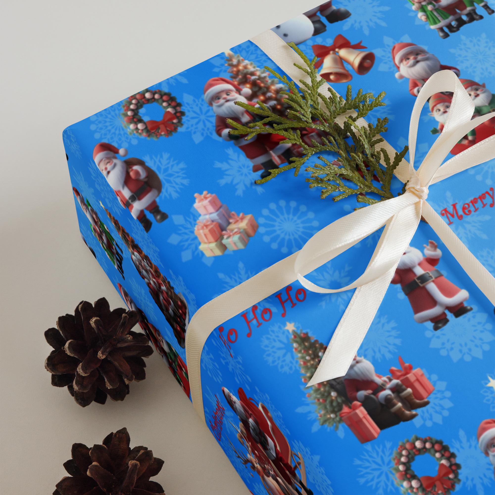 Also included is our colorful Christmas wrapping paper featuring a cheerful "Santa Claus" design! This playful design includes charming Santa Claus illustrations scattered throughout a whimsical forest scene.