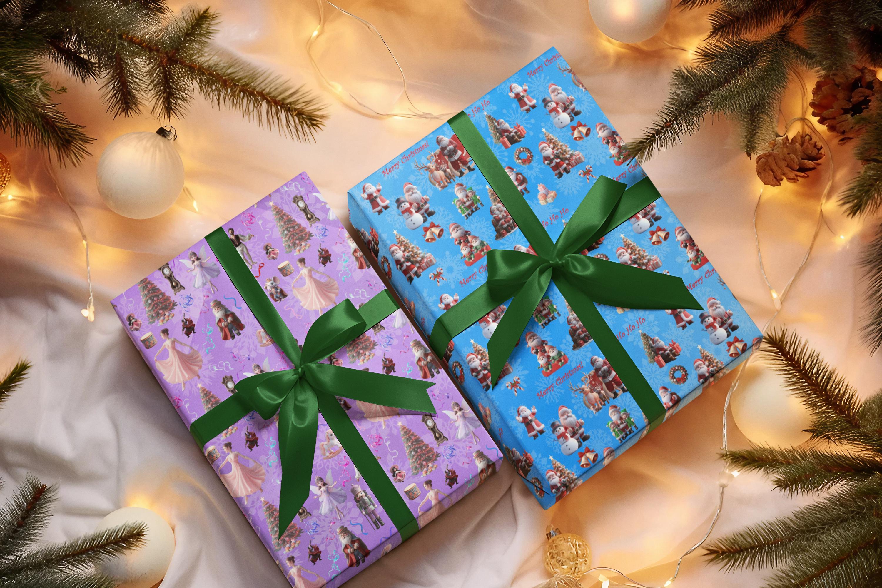 Add a touch of magic to your holiday gifts with this set of 3 Christmas wrapping paper featuring designs inspired by the Nutcracker Suite, Santa Claus, and a Gingerbread Man. Perfect for creating a festive atmosphere under your tree! Wrap your gifts in style with these premium wrapping paper sheets! Get three high-quality, matte-finished sheets and add a touch of elegance to birthdays, anniversaries, and other celebrations.
