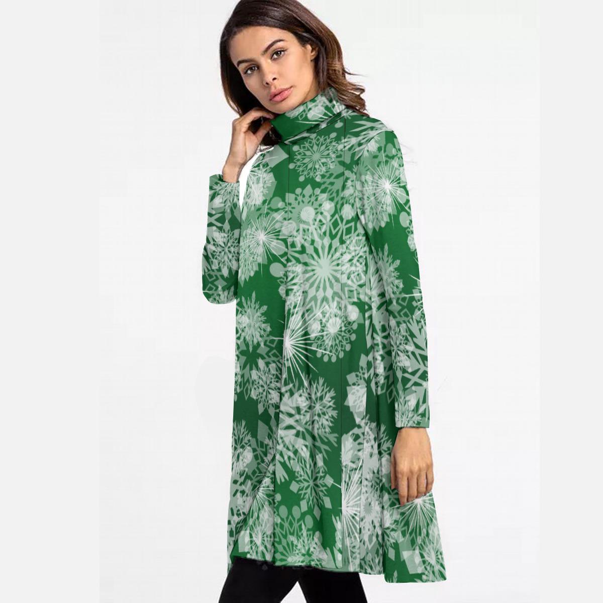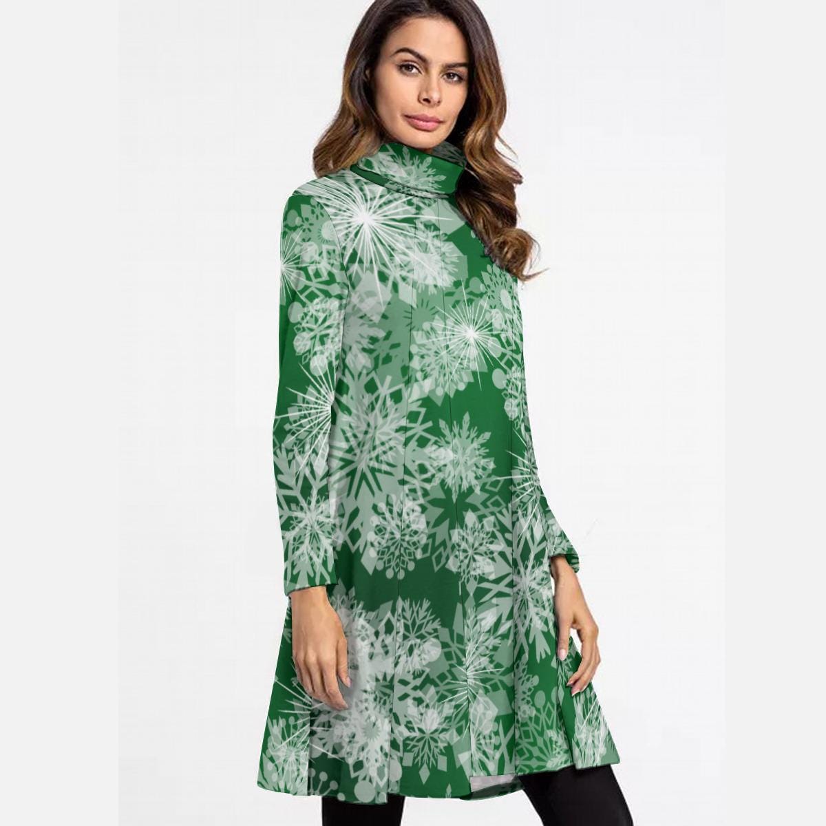 Get ready to dazzle in this exquisite high neck above the knee dress featuring an elegant snowflake design on a striking green background. Perfect for any special occasion, this dress exudes sophistication and charm. Stand out from the crowd in style with this unique piece!