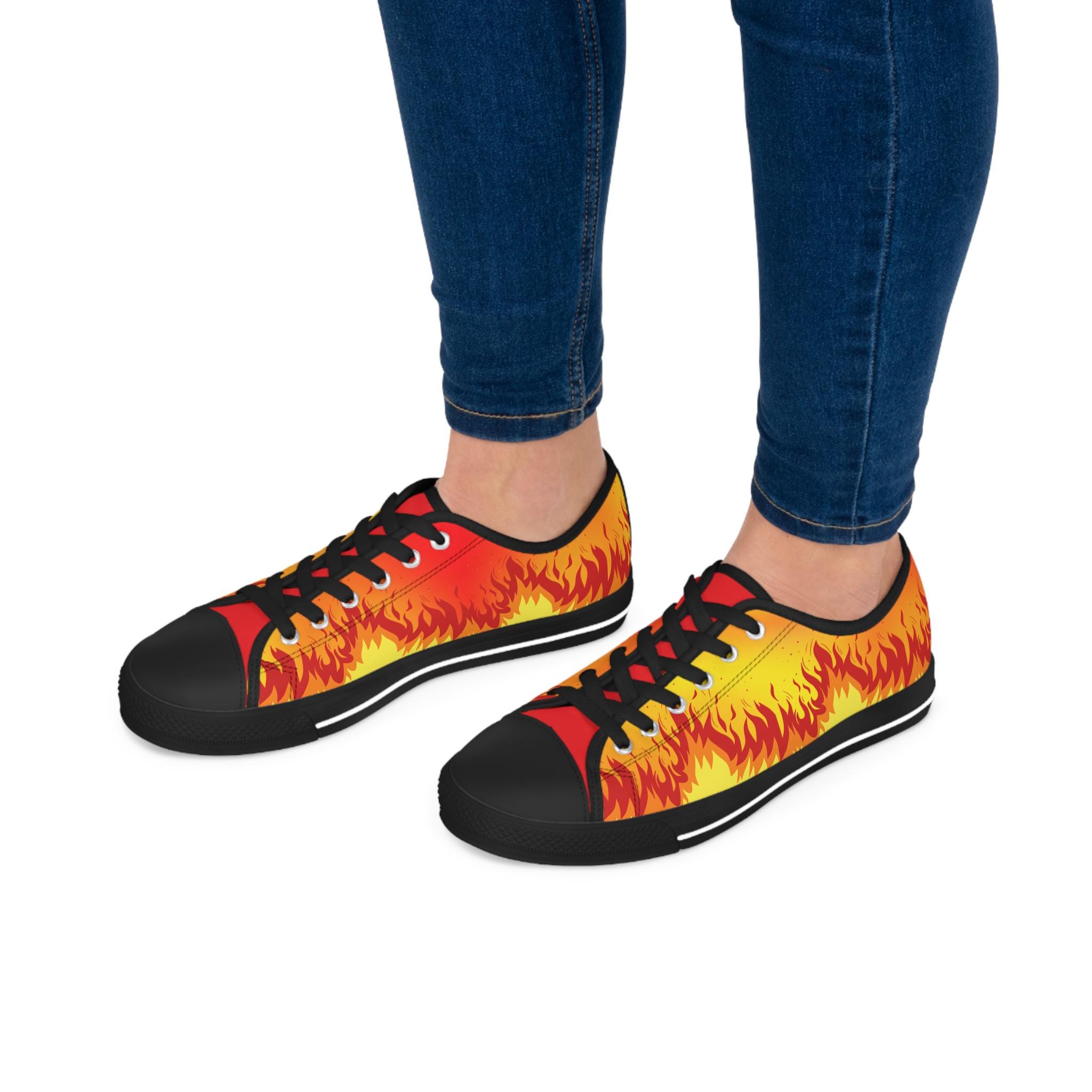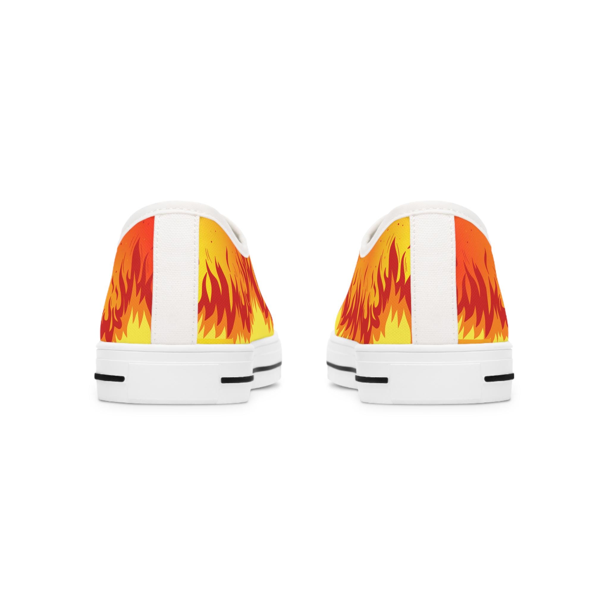 Ignite your style with these Women’s Low Top Sneakers featuring a bold, blazing fire design. Perfect for adding a striking edge to casual outfits, these sneakers combine comfort and attitude, making them a standout choice for everyday wear, concerts, festivals, or street-style looks.