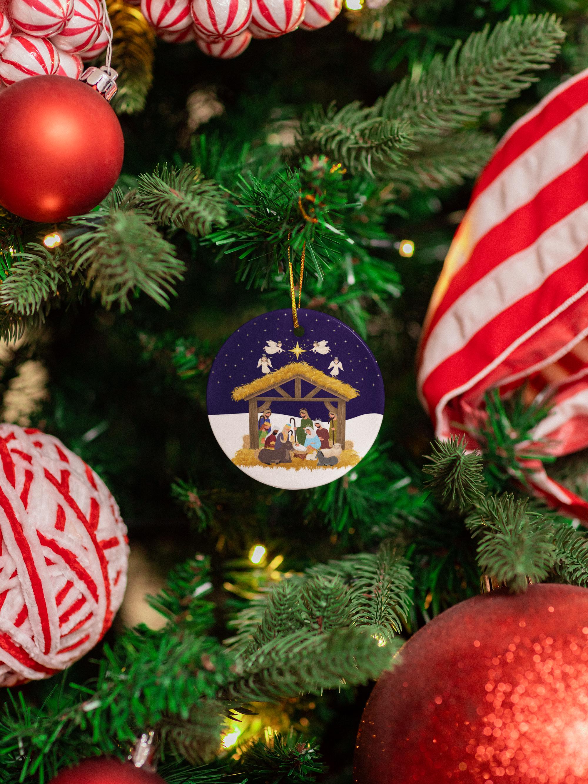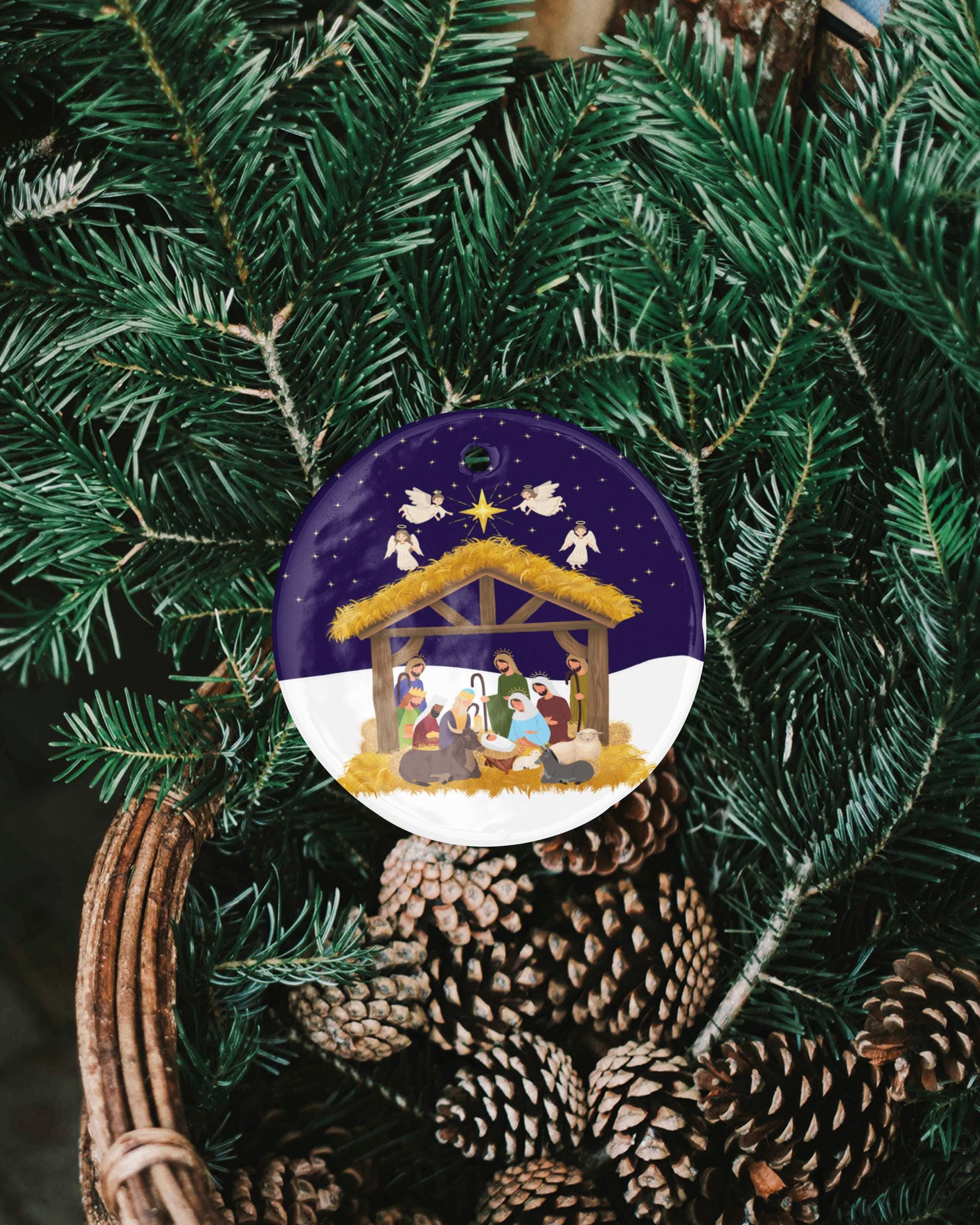 Bring the magic of the holiday season into your home with our adorable Christmas nativity scene ceramic tree ornament! This charming ornament features the full scene, with ALL of the characters, capturing the essence of the Christmas story that depict the nativity scene, making it a perfect addition to your festive décor. Crafted from high-quality ceramic, this cute ornament is not only a delightful decoration for your Christmas tree but also a lovely gift for family and friends. Measuring just the right size to hang beautifully among your other ornaments, it will remind you of the true meaning of Christmas year after year. Celebrate the season with this enchanting piece that blends tradition and whimsy!