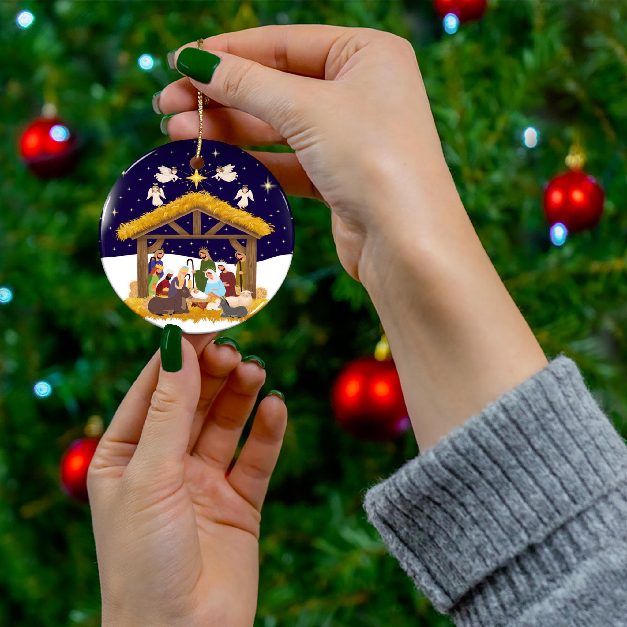 Nativity Scene Ceramic Ornament: Religious Christmas Tree Decoration