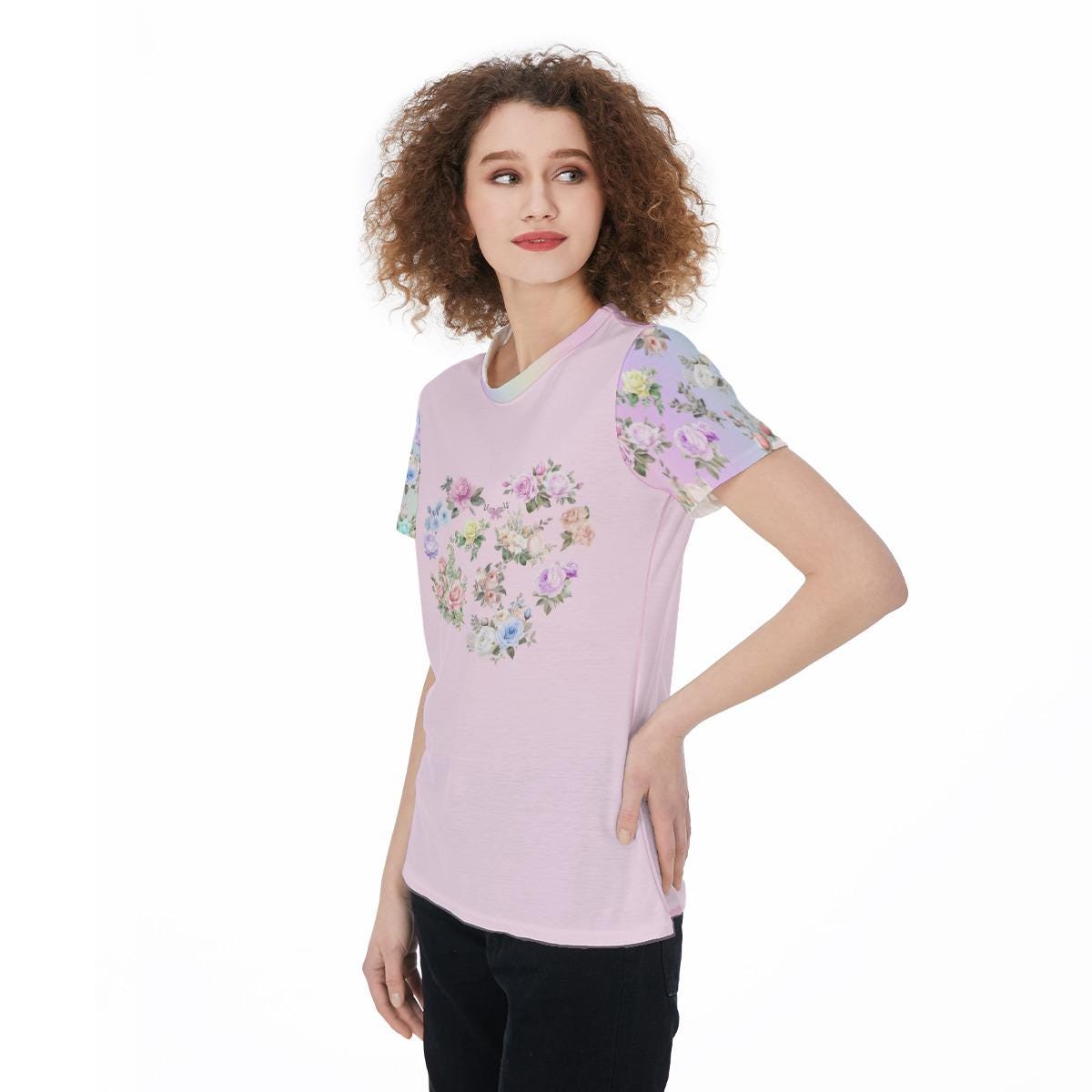 Pink Floral Heart Pajama Top: Pastel Rainbow Sleepwear