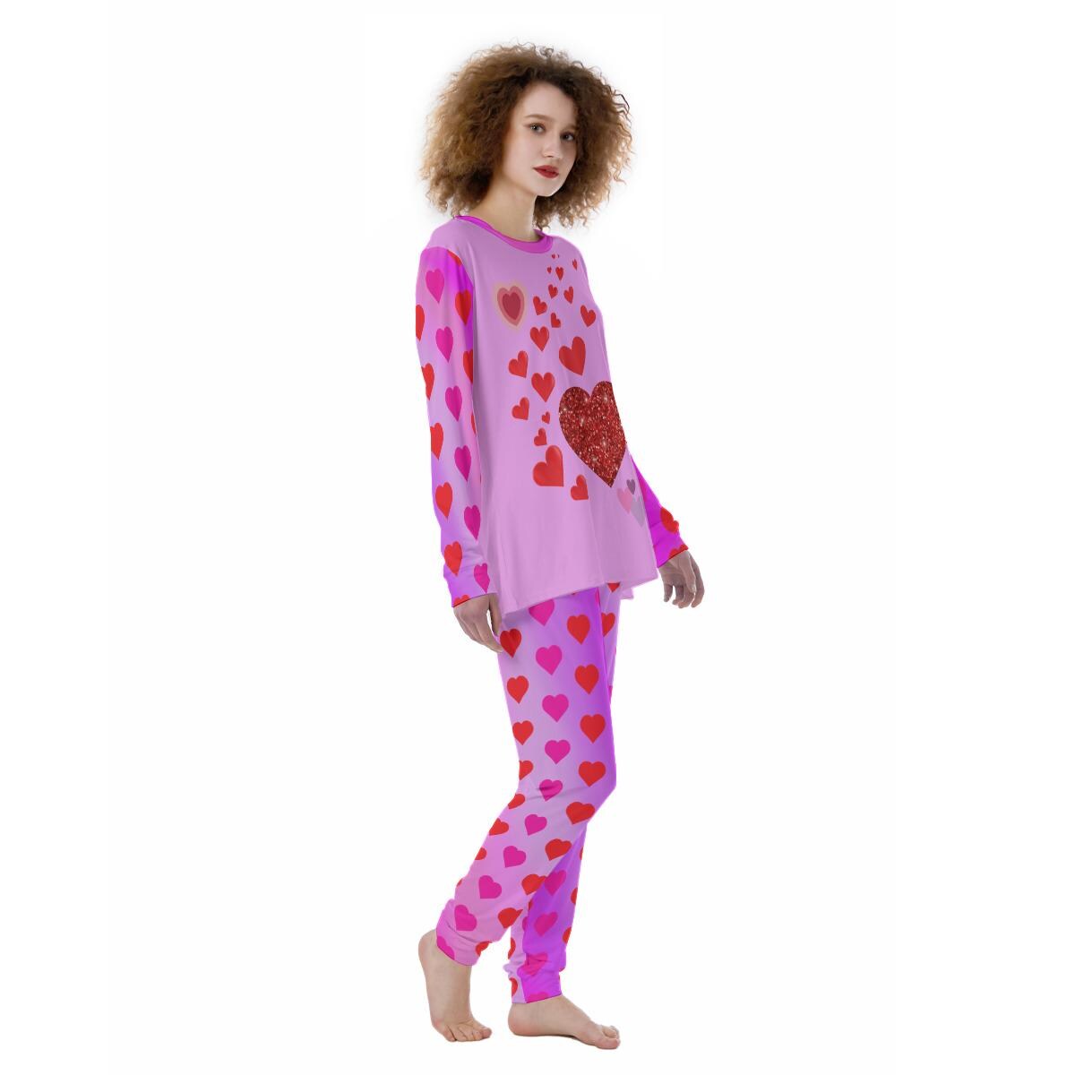 Women’s Pajama Set – Fun Heart Pattern Crew‑Neck Sleepwear Two‑Piece Lounge Set