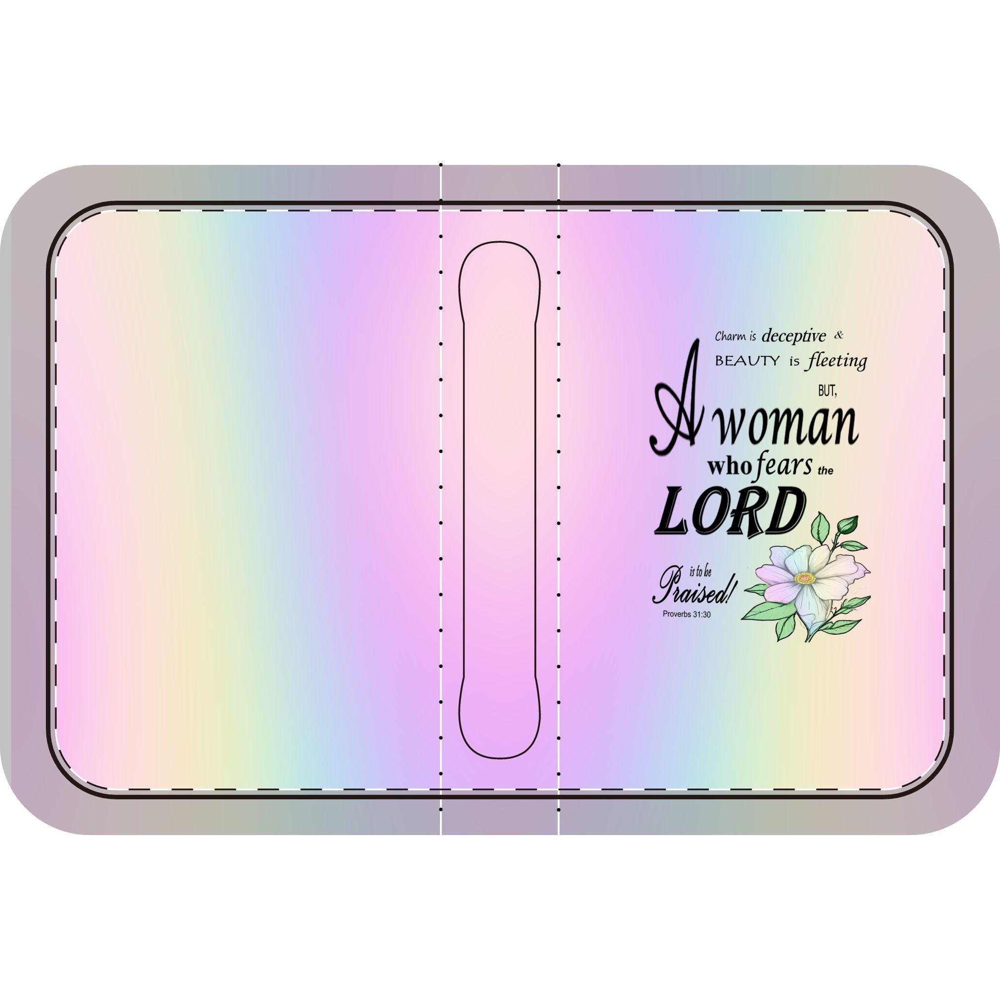 Pastel Rainbow, Floral Bible Cover, Proverbs 31:30 Scripture Quote, Religious Gift for Women, Church Accessory, Faith-Based Journal Cover