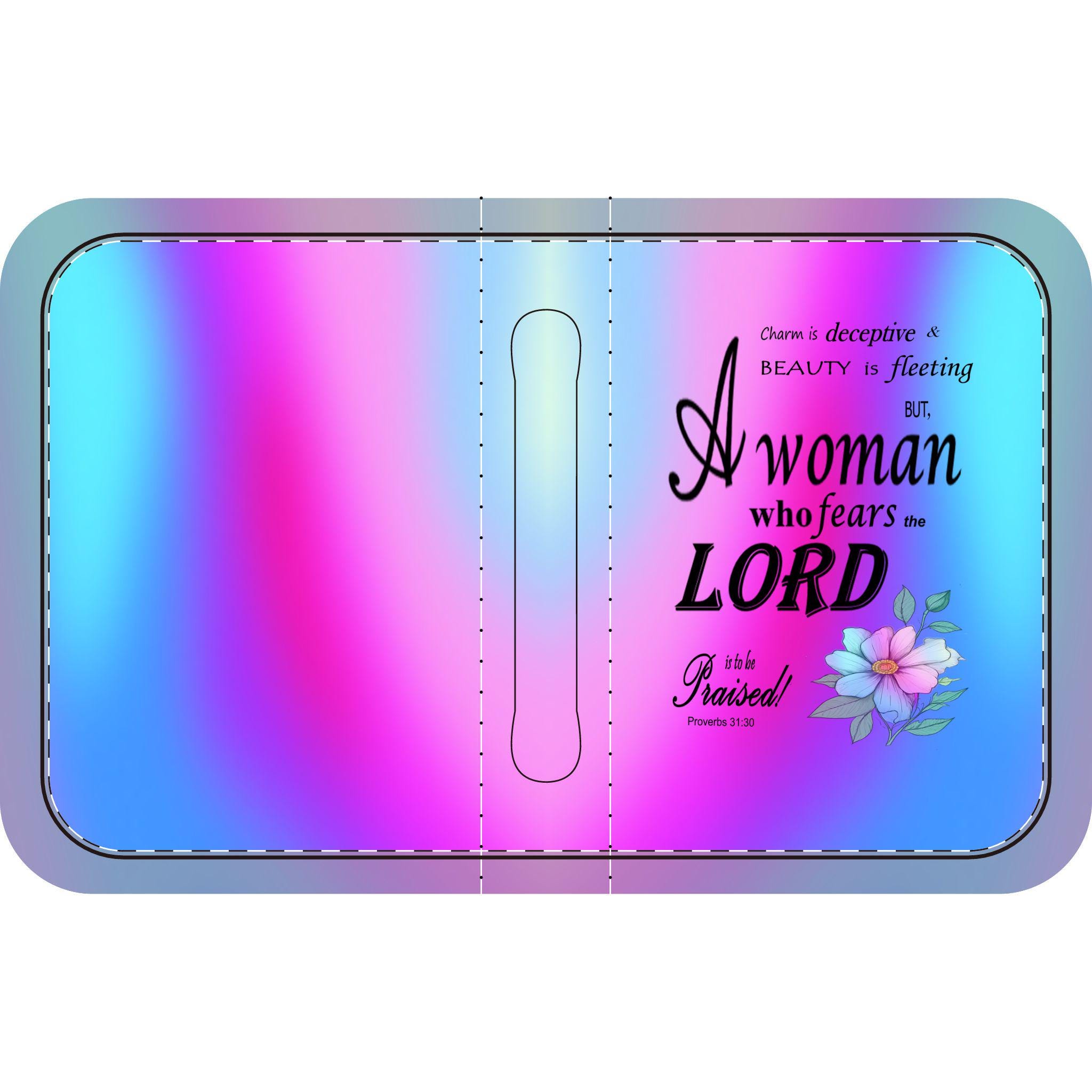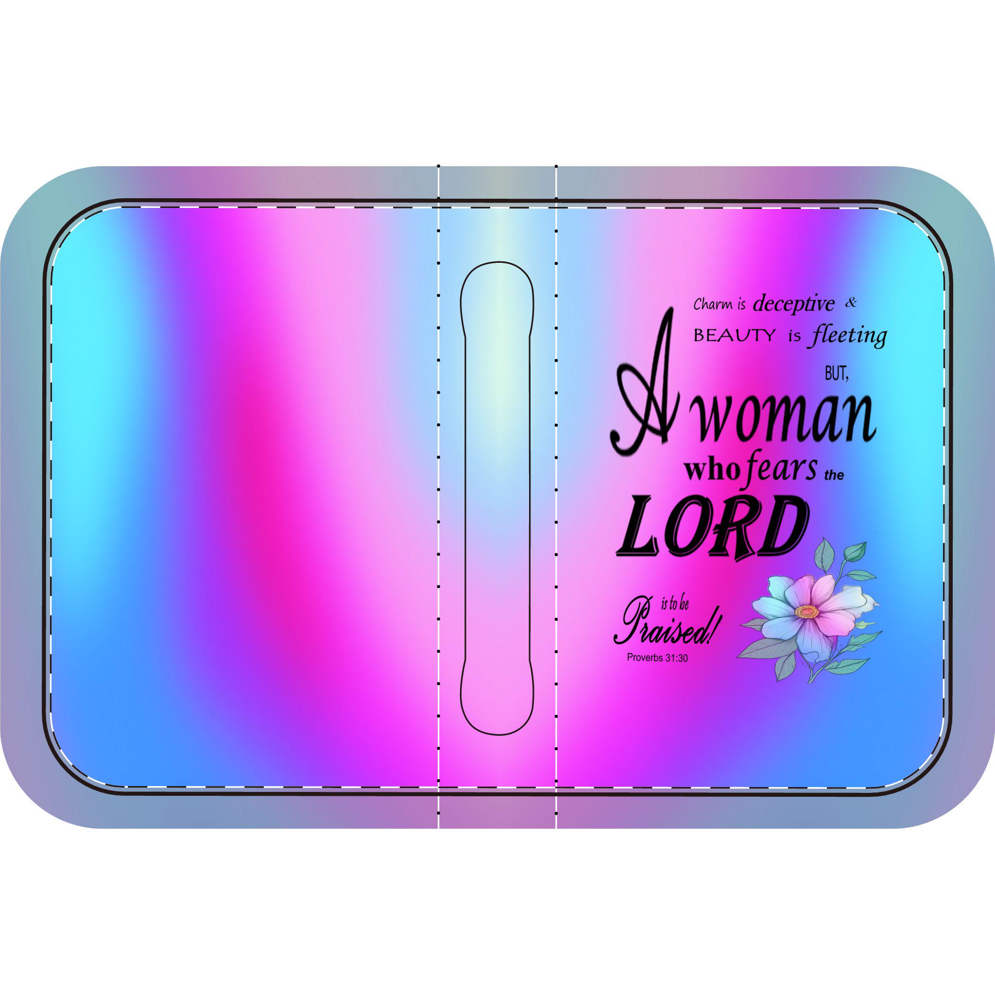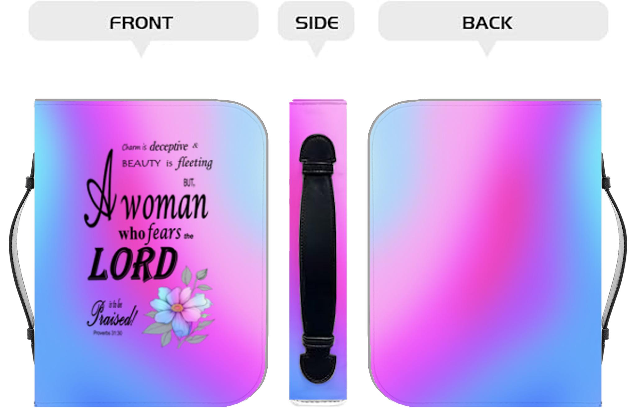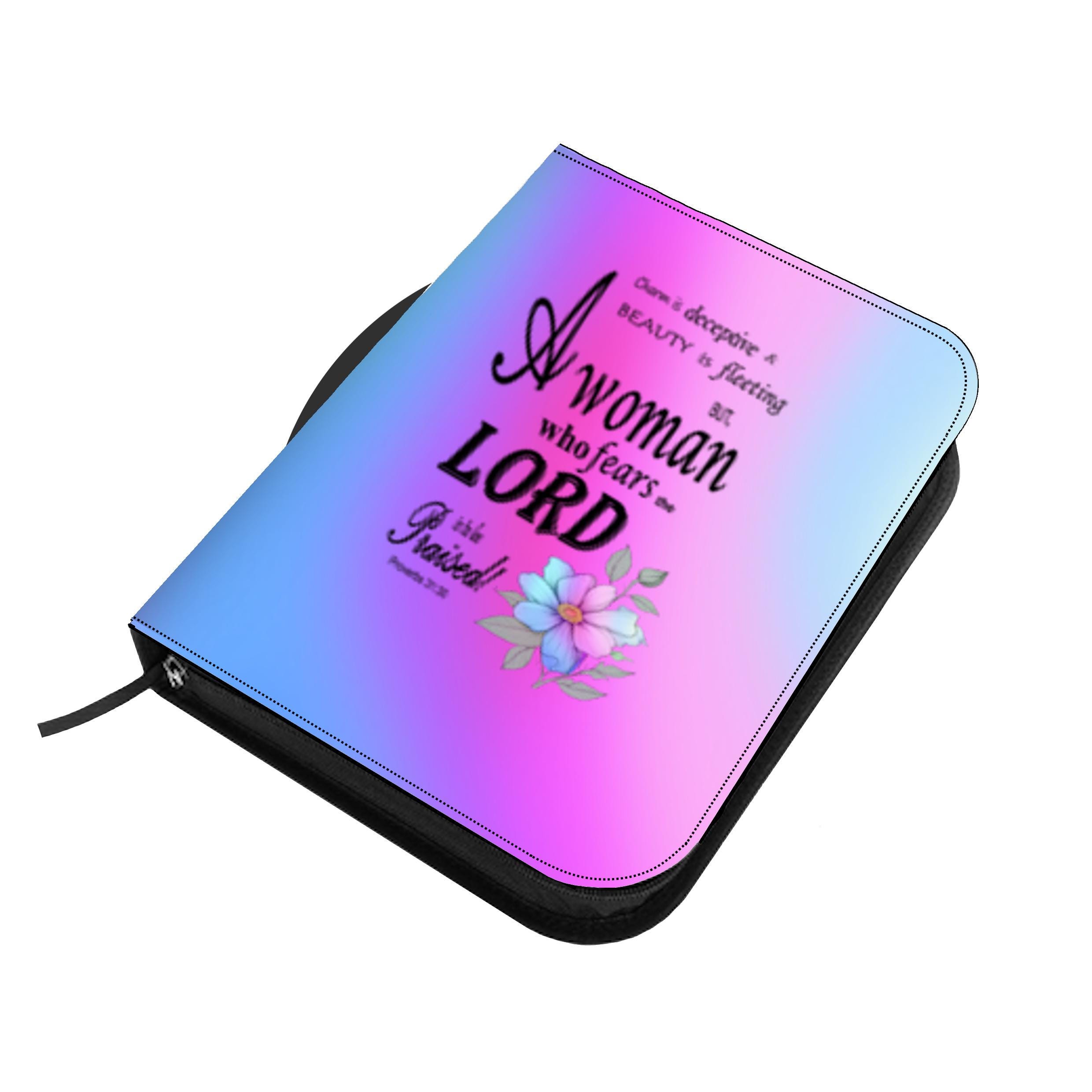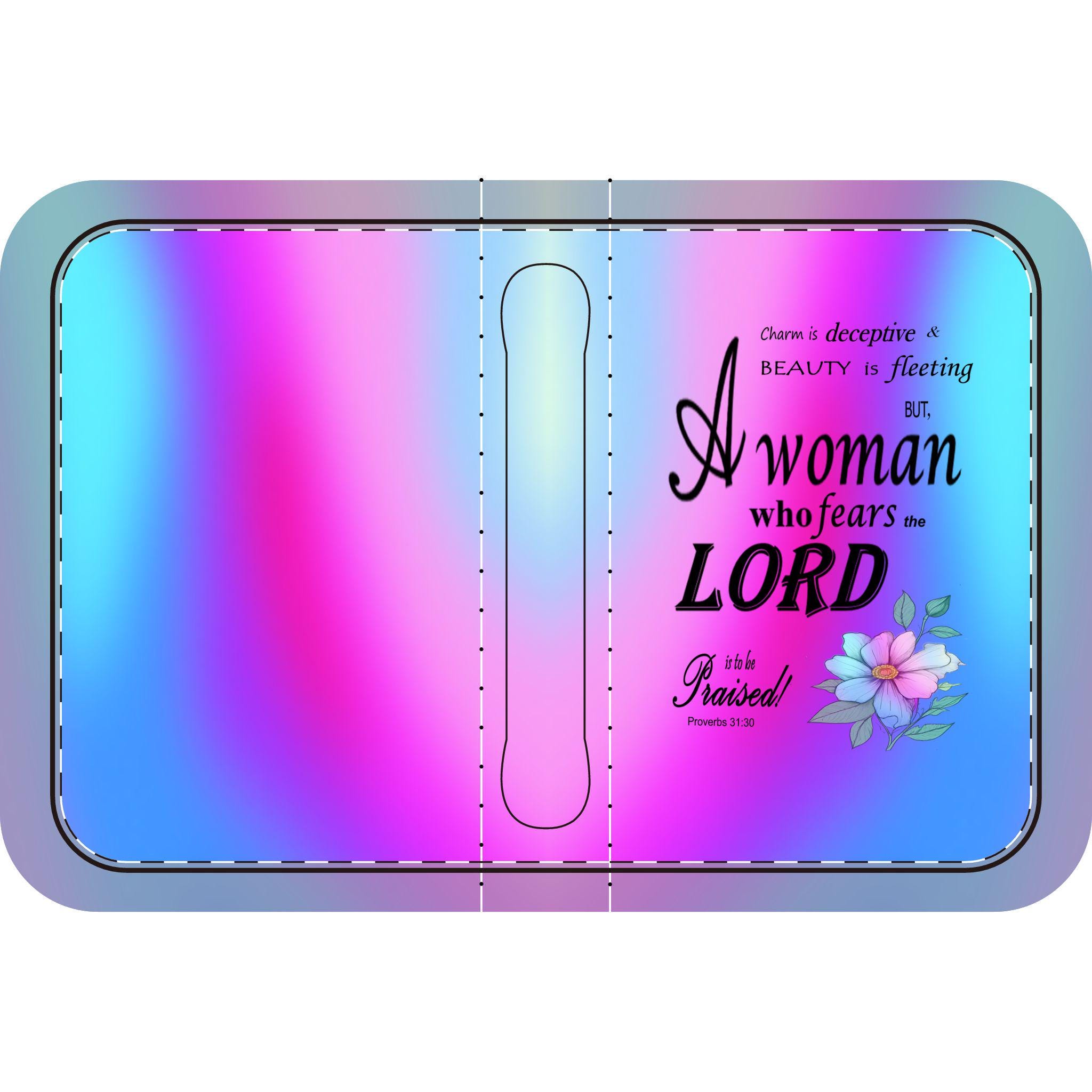 Pink, Blue, & Purple, Floral Bible Cover, Proverbs 31:30 Scripture Quote, Religious Gift Women, Church Accessory, Faith-Based Journal Cover