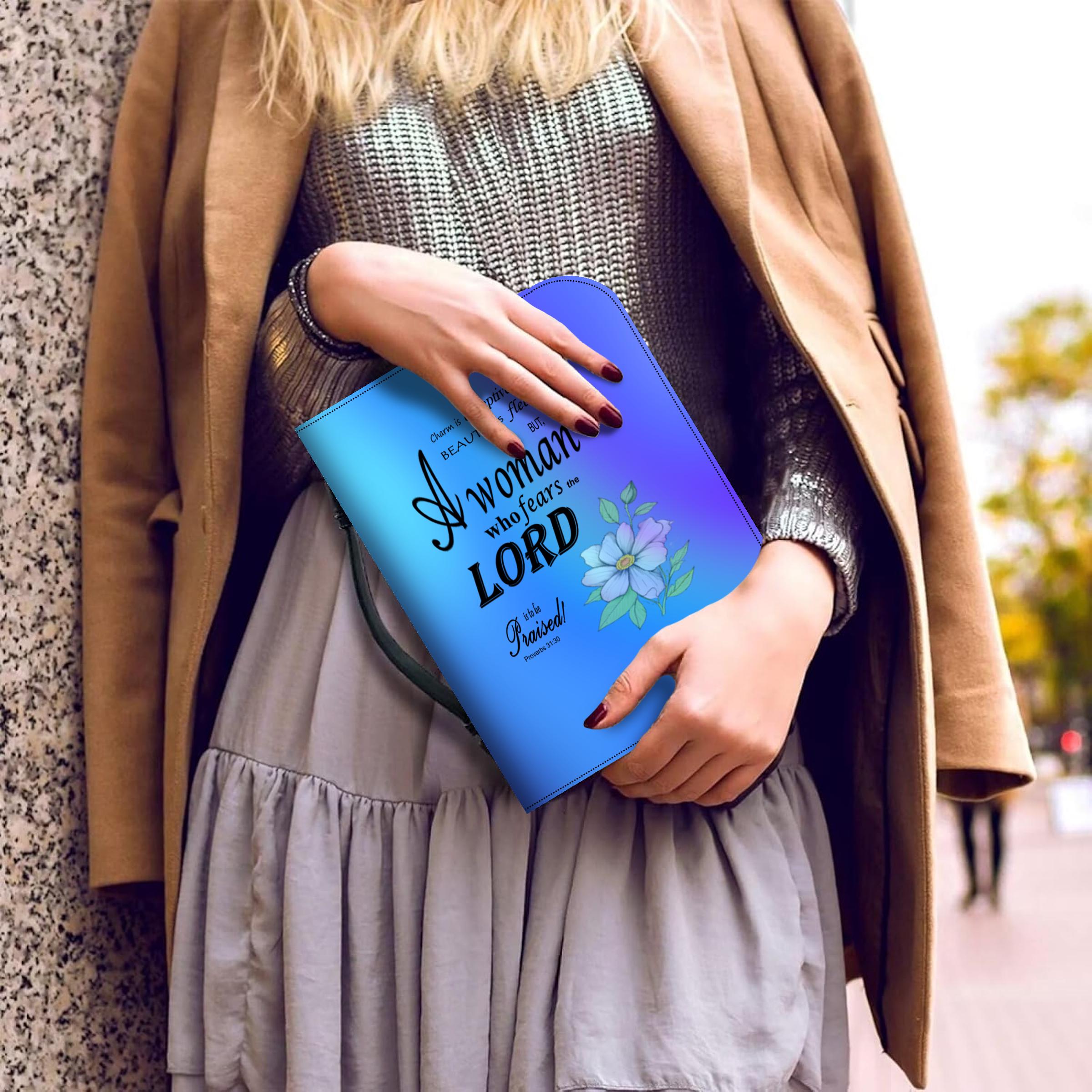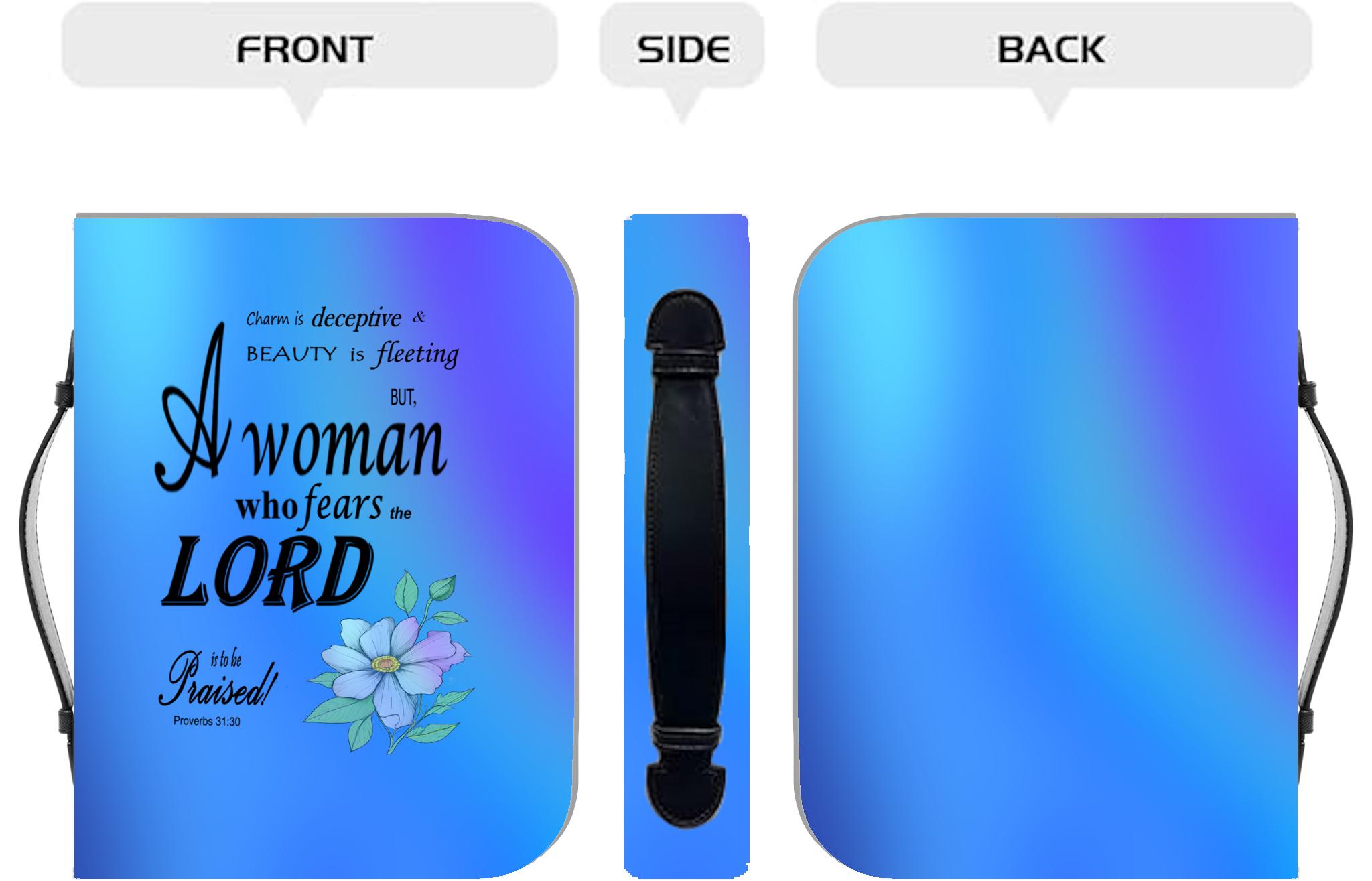 Blue, Floral Bible Cover, Proverbs 31:30 Scripture Quote, Religious Gift for Women, Church Accessory, Faith-Based Journal Cover