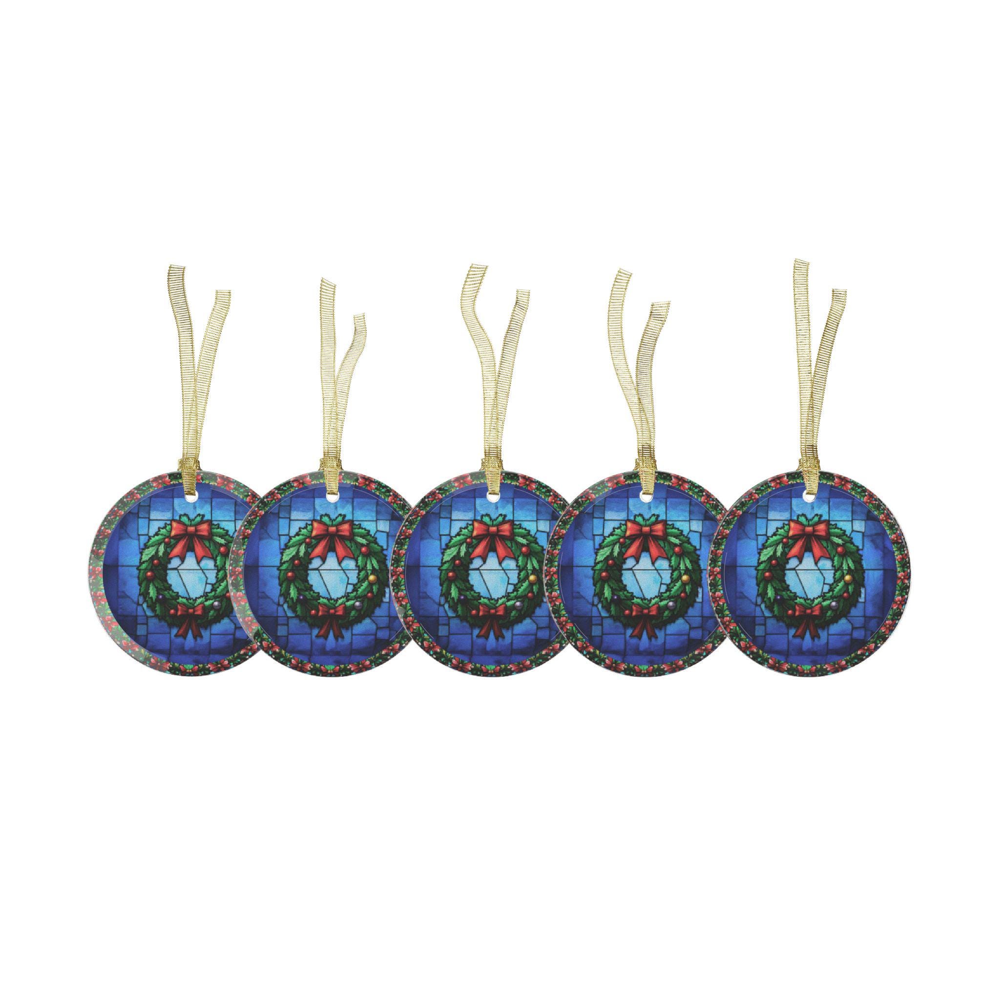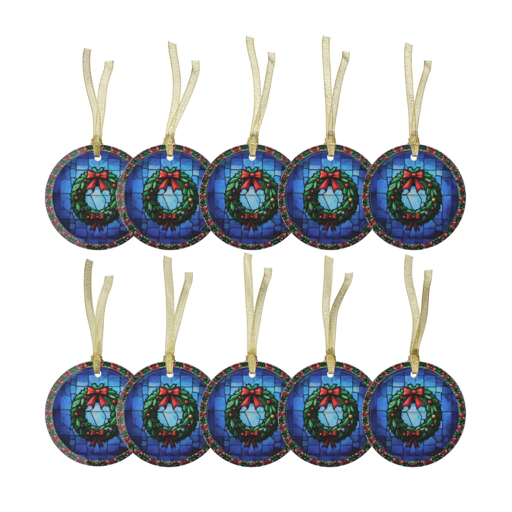 These stained glass Christmas wreath ornaments bring a festive and elegant touch to your holiday decor. Perfect for Christmas enthusiasts and those who love unique decorations. Ideal for Christmas celebrations, holiday parties, and gift-giving.