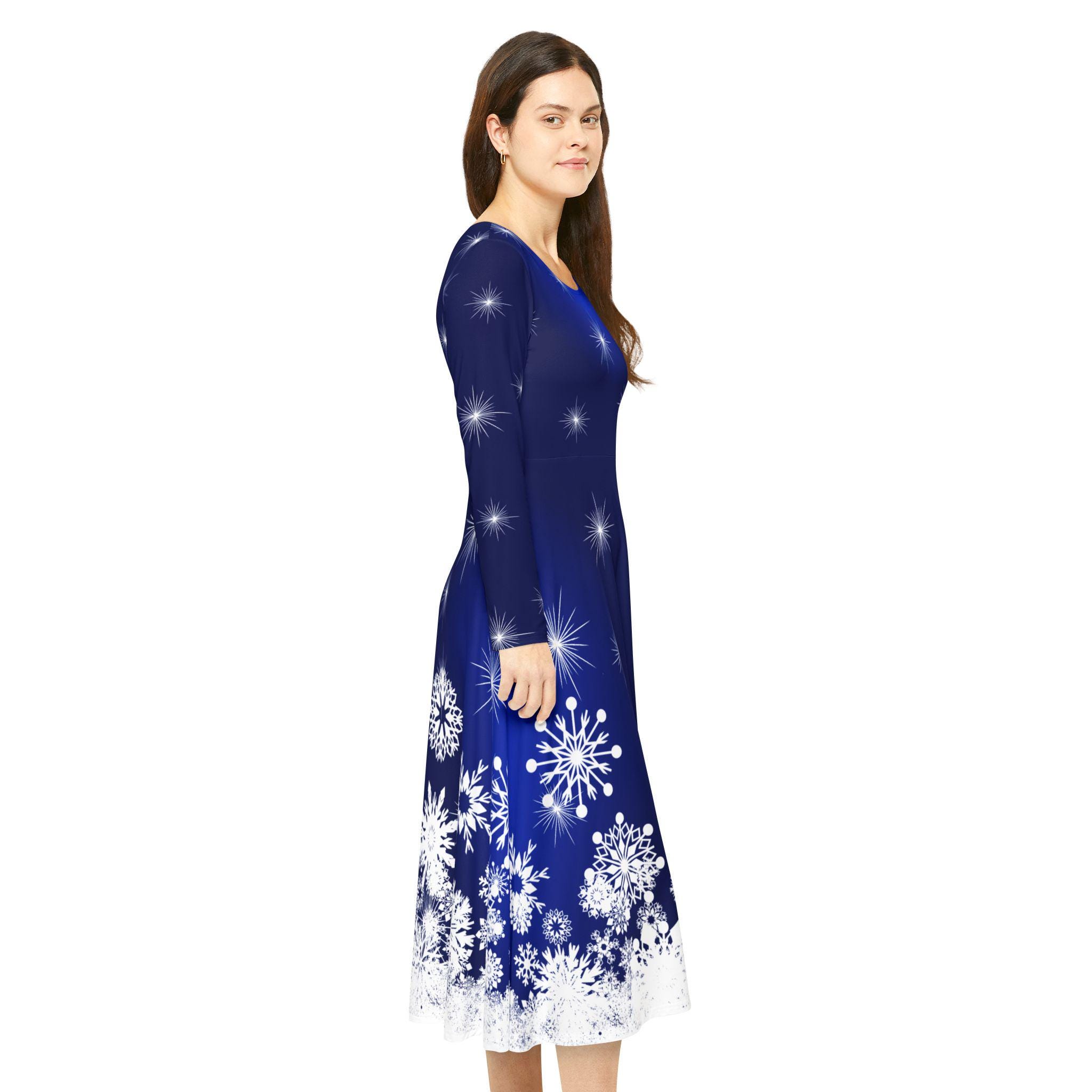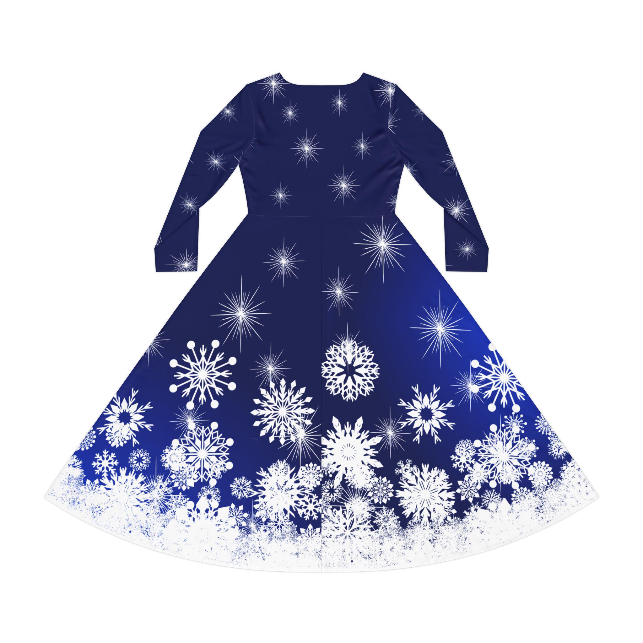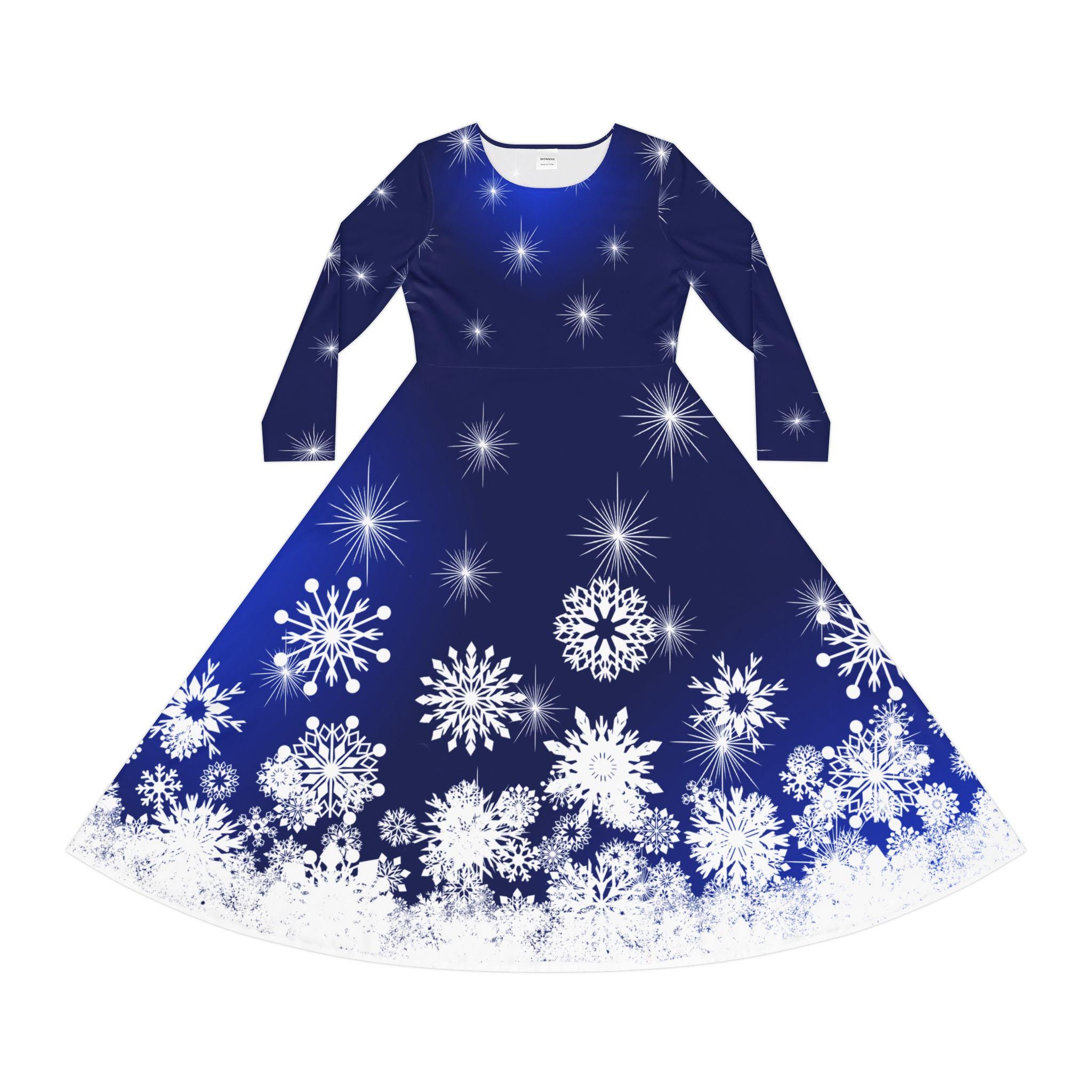 Elegant Snowflake Party Dress: Long Sleeve Modest Christmas Outfit