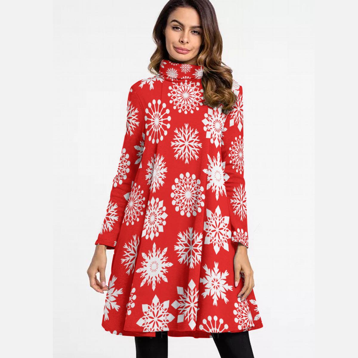 Get ready to dazzle in this exquisite high neck above the knee dress featuring an elegant snowflake design on a striking gray background. Perfect for any special occasion, especially Christmas, this dress exudes sophistication and charm. Stand out from the crowd in style with this unique piece!