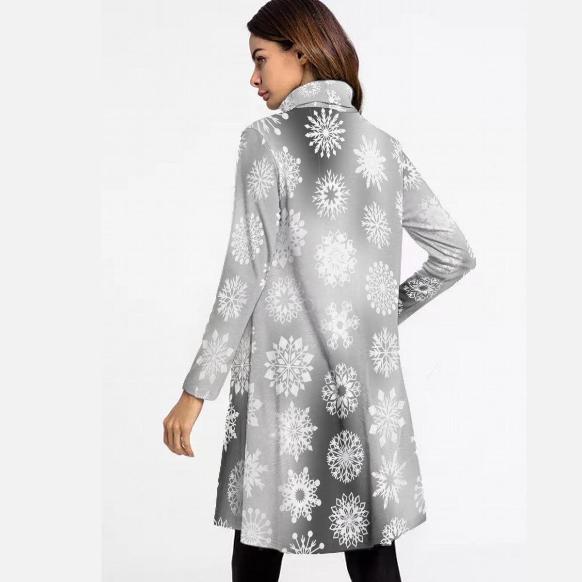 Get ready to dazzle in this exquisite high neck above the knee dress featuring an elegant snowflake design on a striking gray background. Perfect for any special occasion, especially Christmas, this dress exudes sophistication and charm. Stand out from the crowd in style with this unique piece!