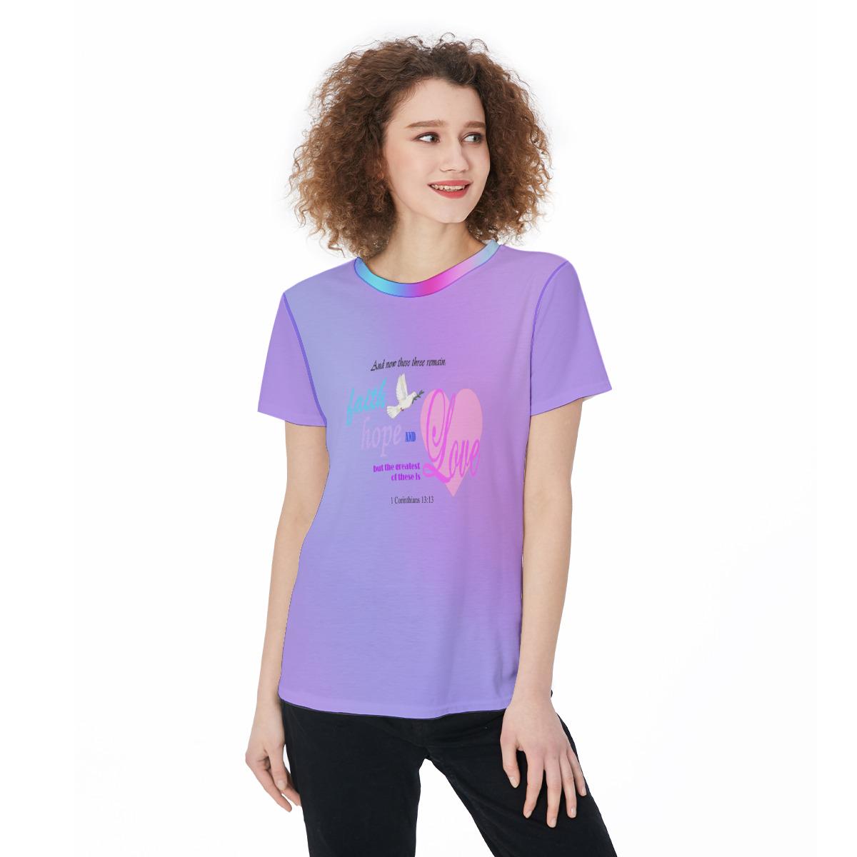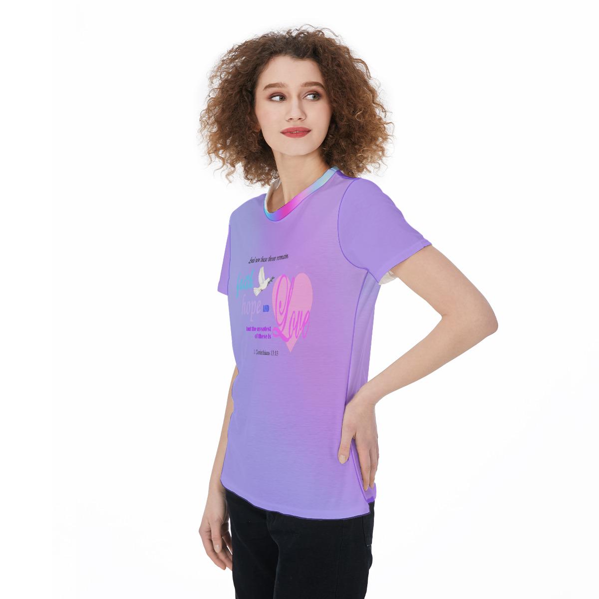 Faith Hope Love Christian Jersey Tee - Purple Gradient