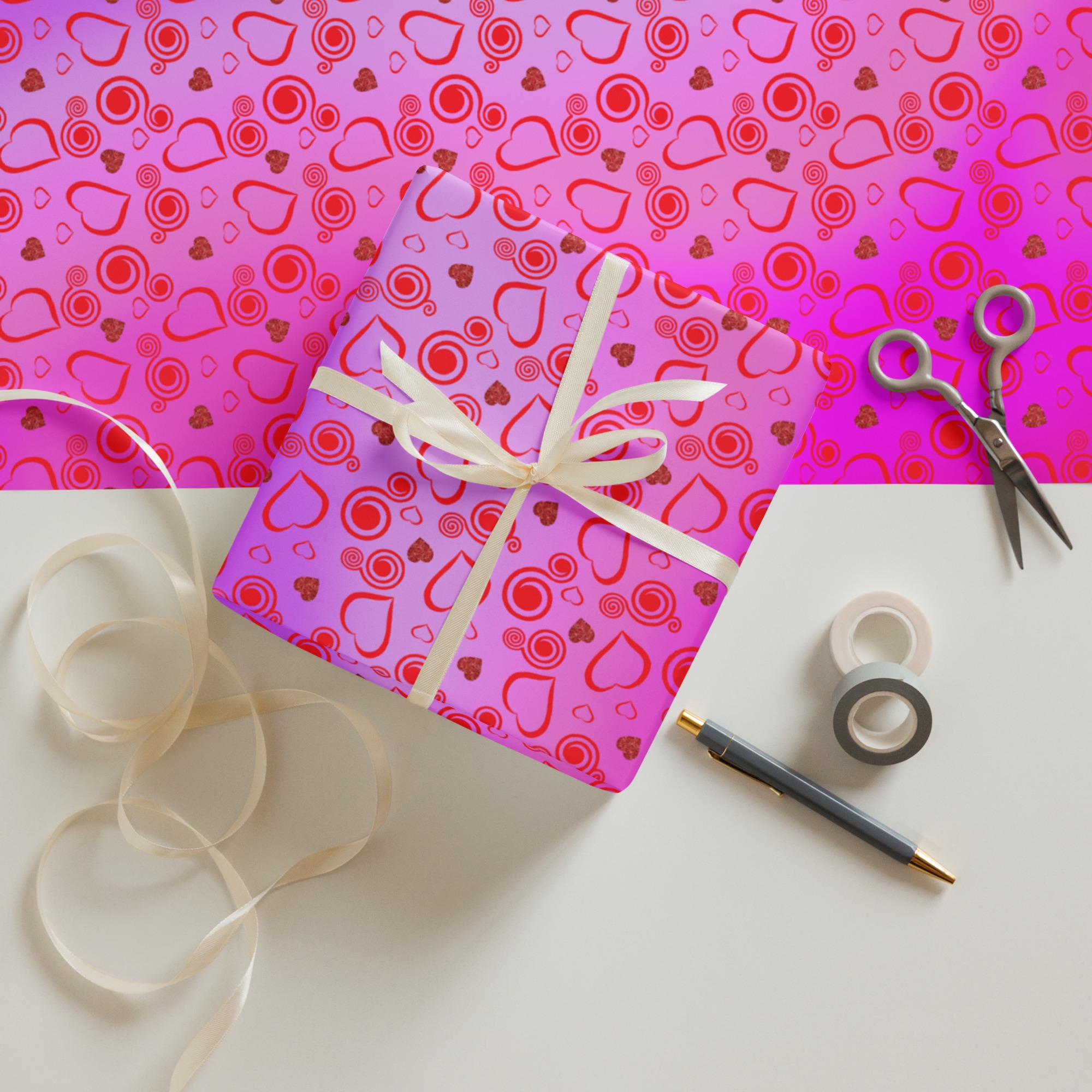 Hearts and Swirls: Charming red hearts and elegant swirls on a beautiful pink gradient backdrop. Make your gifts extra special this season with this romantic and festive wrapping paper that will surely add a touch of love to your presents.