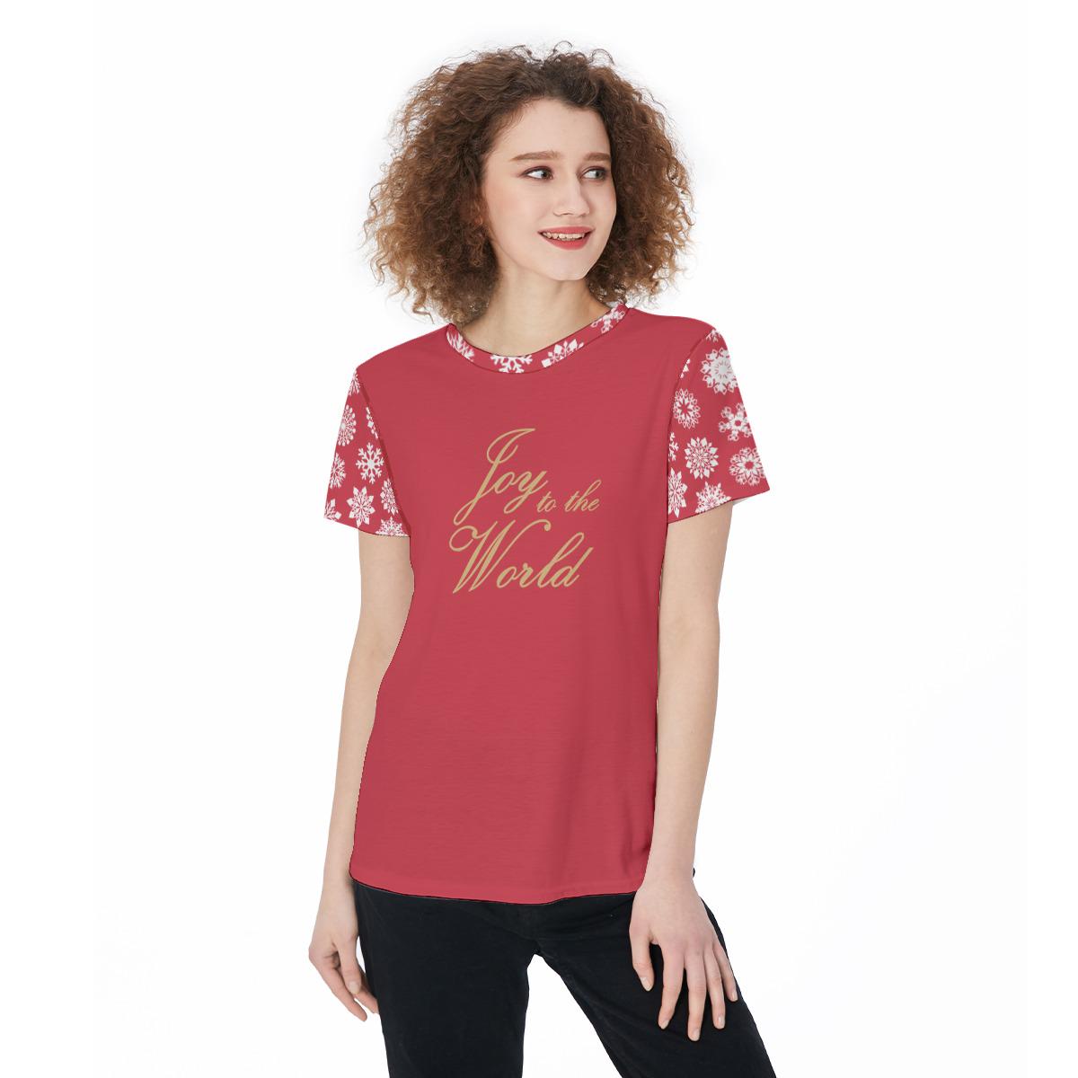 Red Holiday Sleepwear Top: 'Joy to the World' Gold Quote
