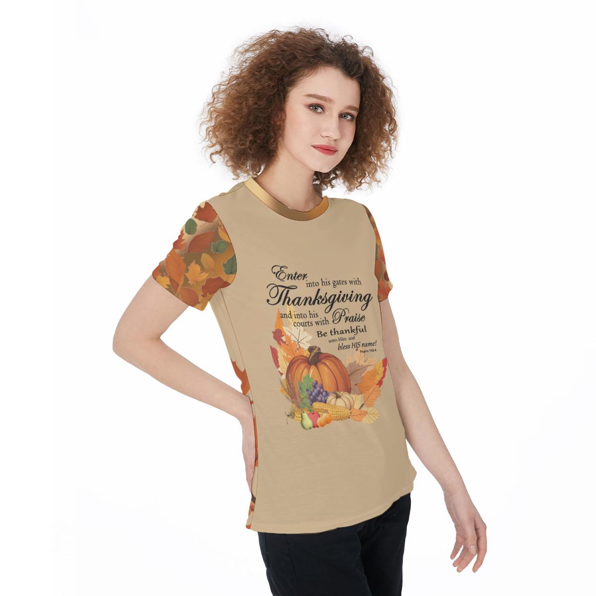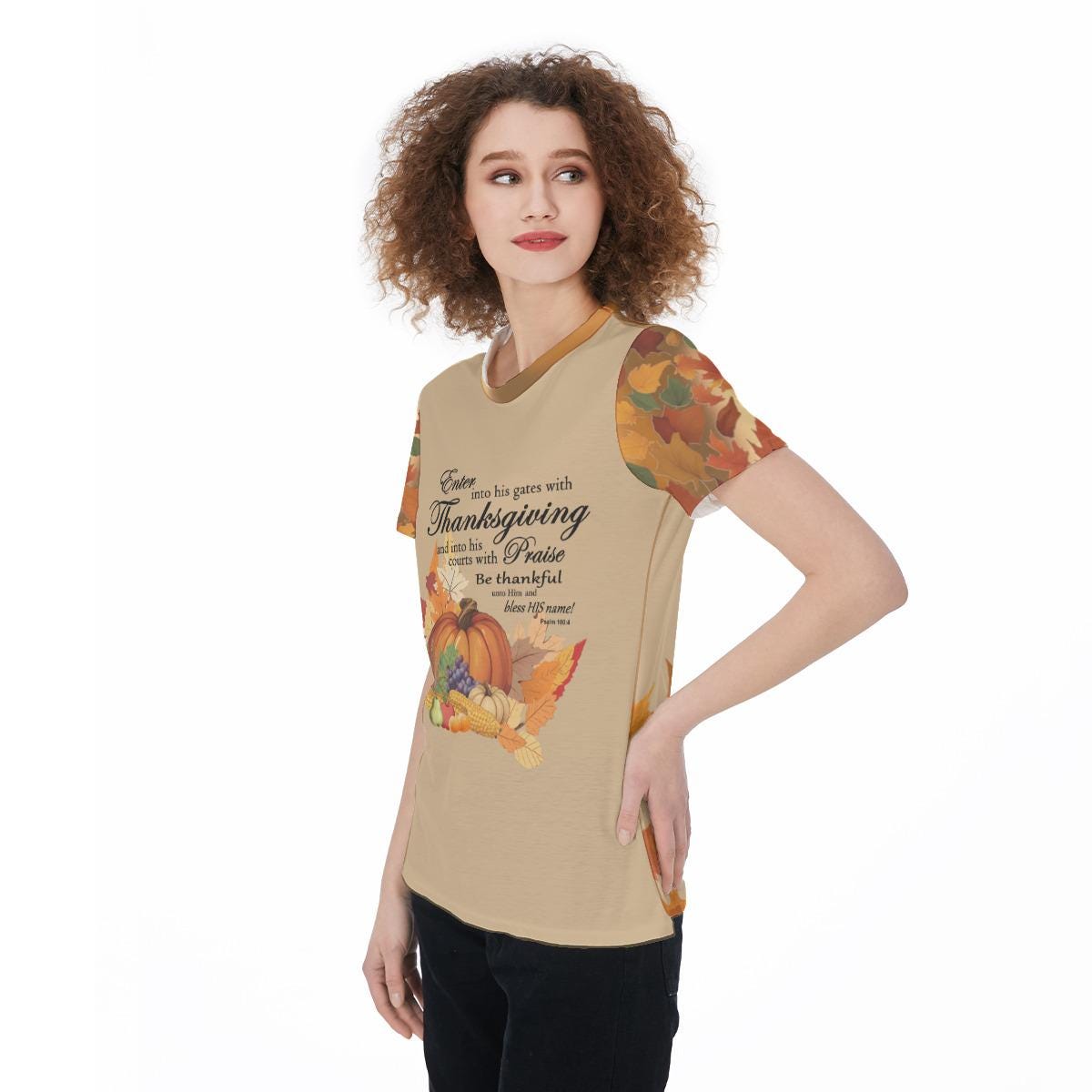Beige Thanksgiving Pajama Shirt: Autumn Leaves Jersey Sleepwear