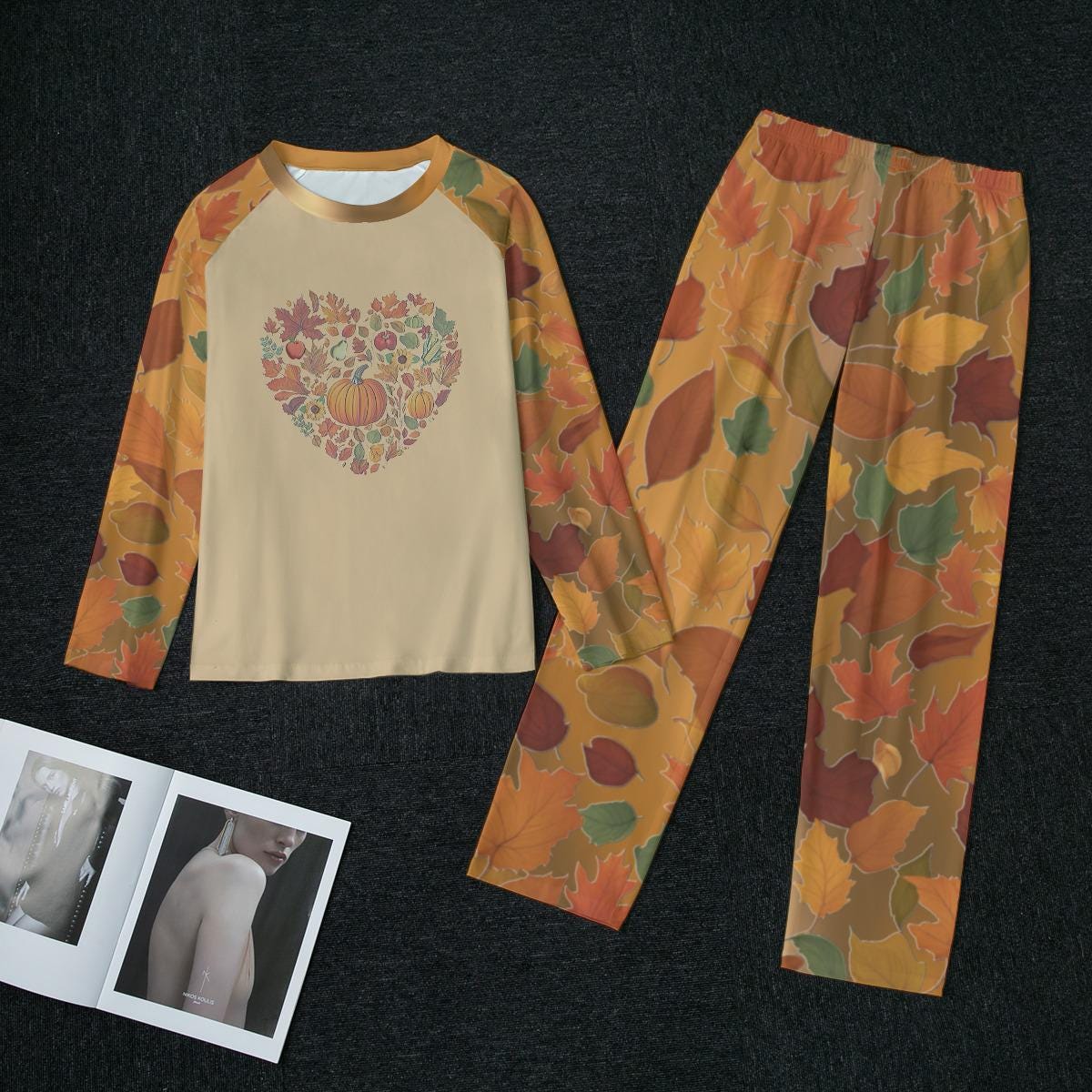 Stay cozy and stylish this fall with our adorable pajamas set featuring a charming fall leaves pattern. This set includes a soft and comfortable top and matching bottoms perfect for lounging around the house or getting a good night's sleep. Embrace the autumn season in comfort and style!
