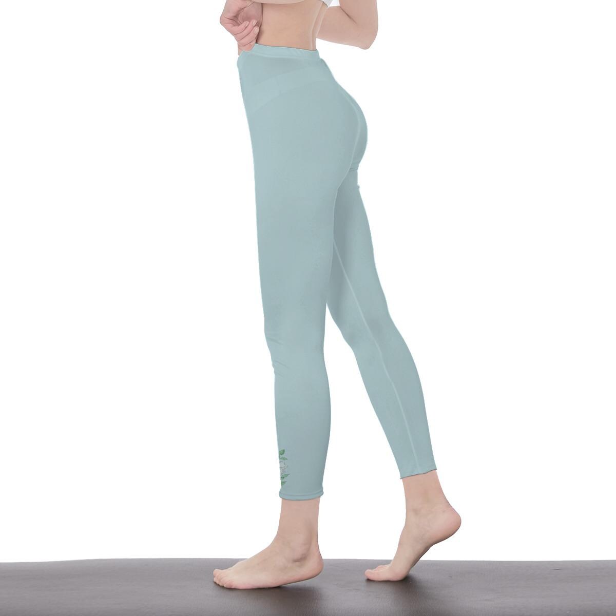 Solid Color Sea Green Floral High Waisted Leggings for Women | Soft Yoga Pants with Minimal Flower Design | Stylish Workout & Lounge Wear