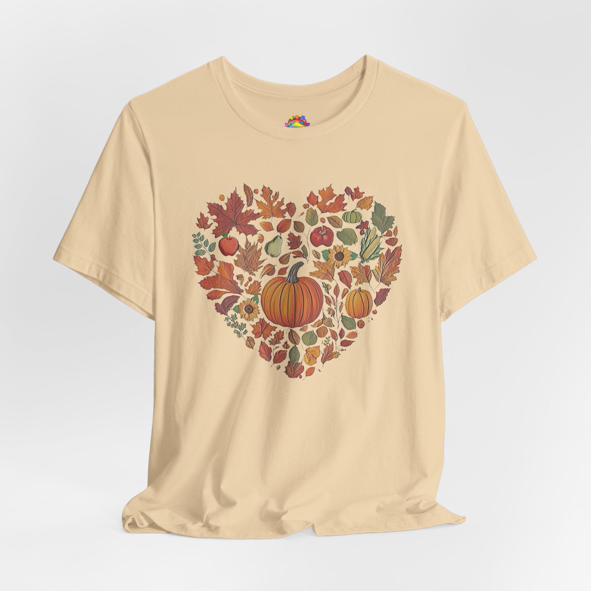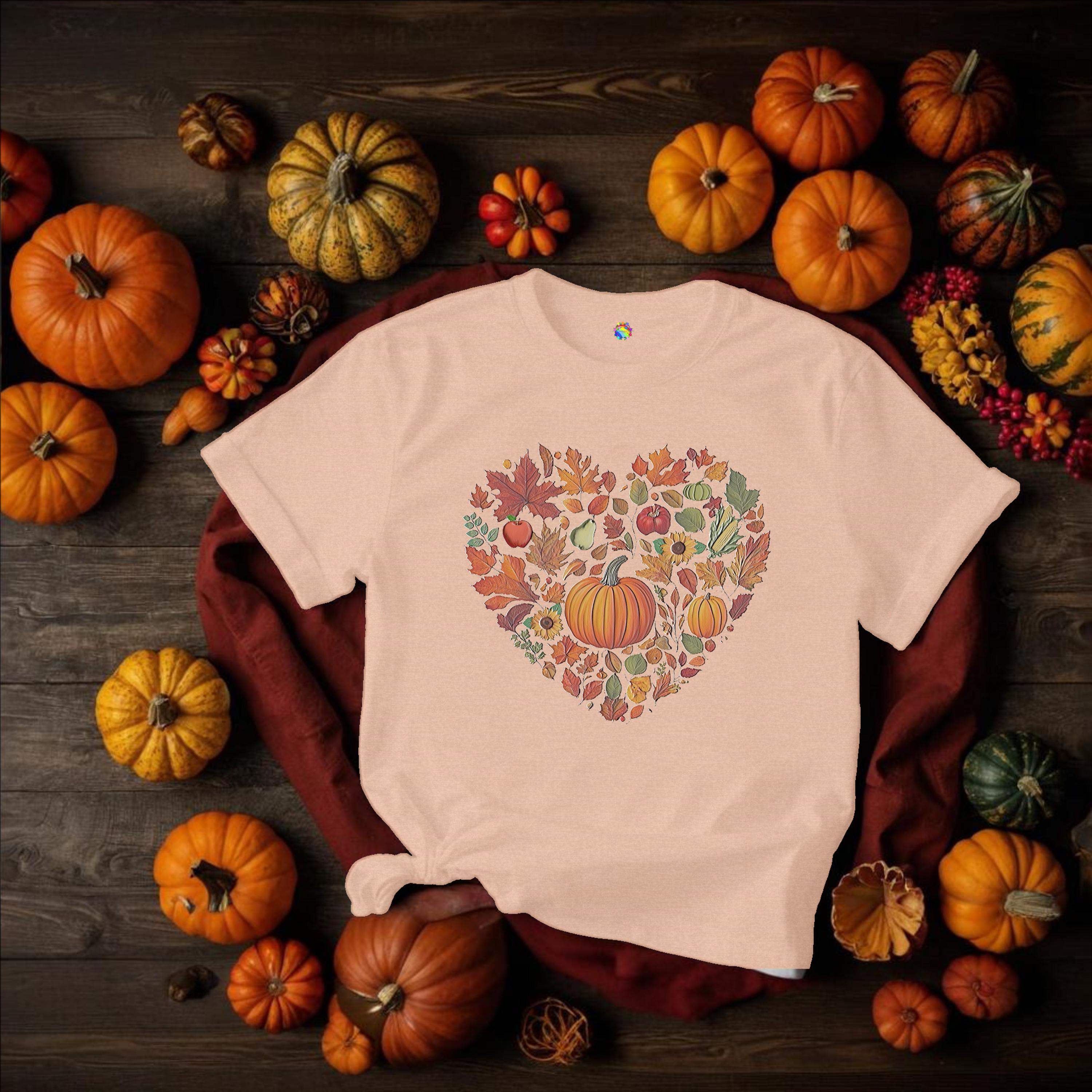 Fall Pumpkin Heart Tee, Autumn Leaves T-Shirt, Thanksgiving Gift