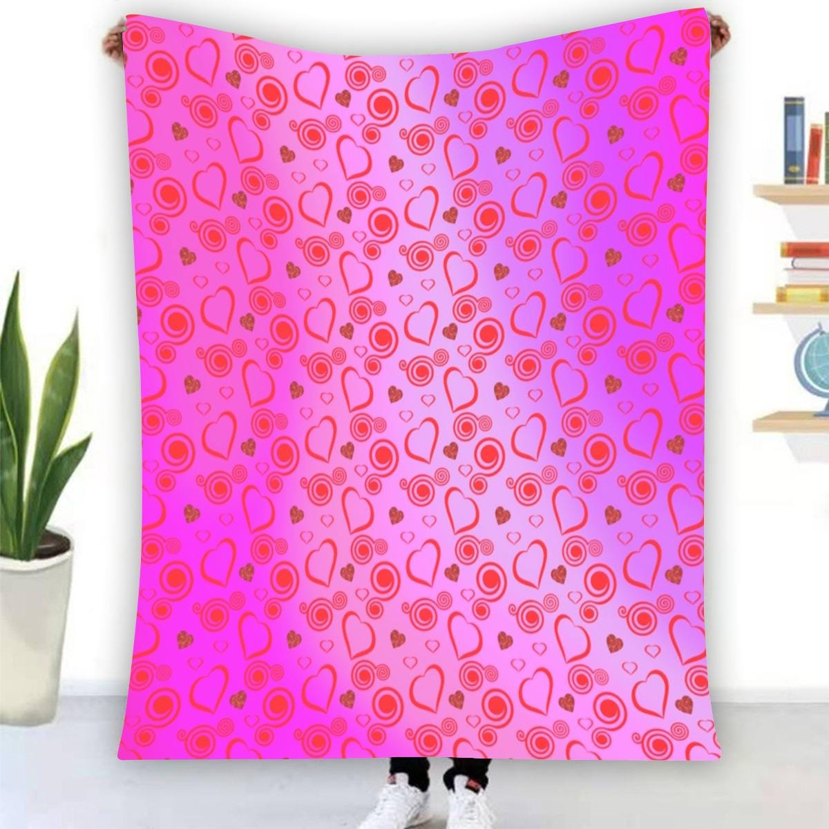Snuggle up in style with our stunning Hearts and Swirls Red Gradient Polyester Fleece Blanket! This cozy blanket features a beautiful design of intertwining hearts and swirling patterns, transitioning gracefully through vibrant shades of red. Made from soft, breathable polyester fleece, it offers warmth and comfort perfect for chilly evenings or cozy nights in. Whether draped over your couch, used as a stylish throw on your bed, or taken along for outdoor adventures, this blanket adds a touch of love and elegance to any space. Ideal for weddings, anniversaries, Valentine's Day, or just because, it’s the perfect gift for someone special or a delightful treat for yourself. Embrace the warmth and charm of our hearts and swirls design – your new favorite blanket awaits!