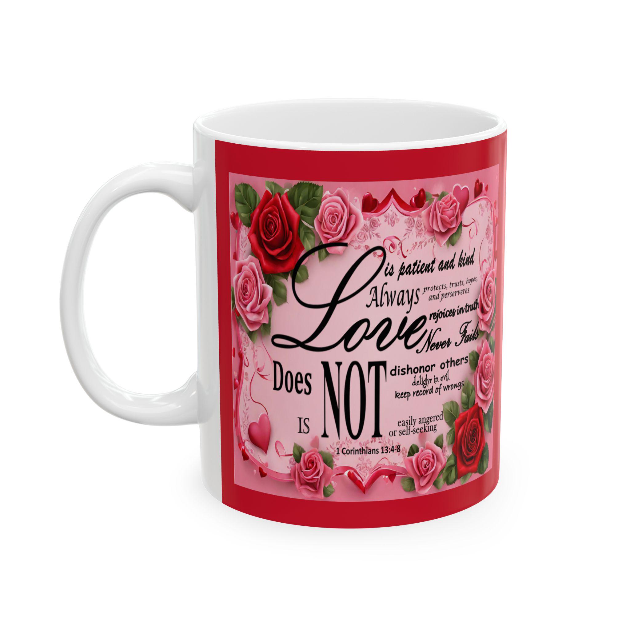 1 Corinthians 13 Romantic Floral Bible Verse 'Love is' Ceramic Mug, Christian Gift for Her, Valentine's Day, Mother's Day, Coffee Lover,