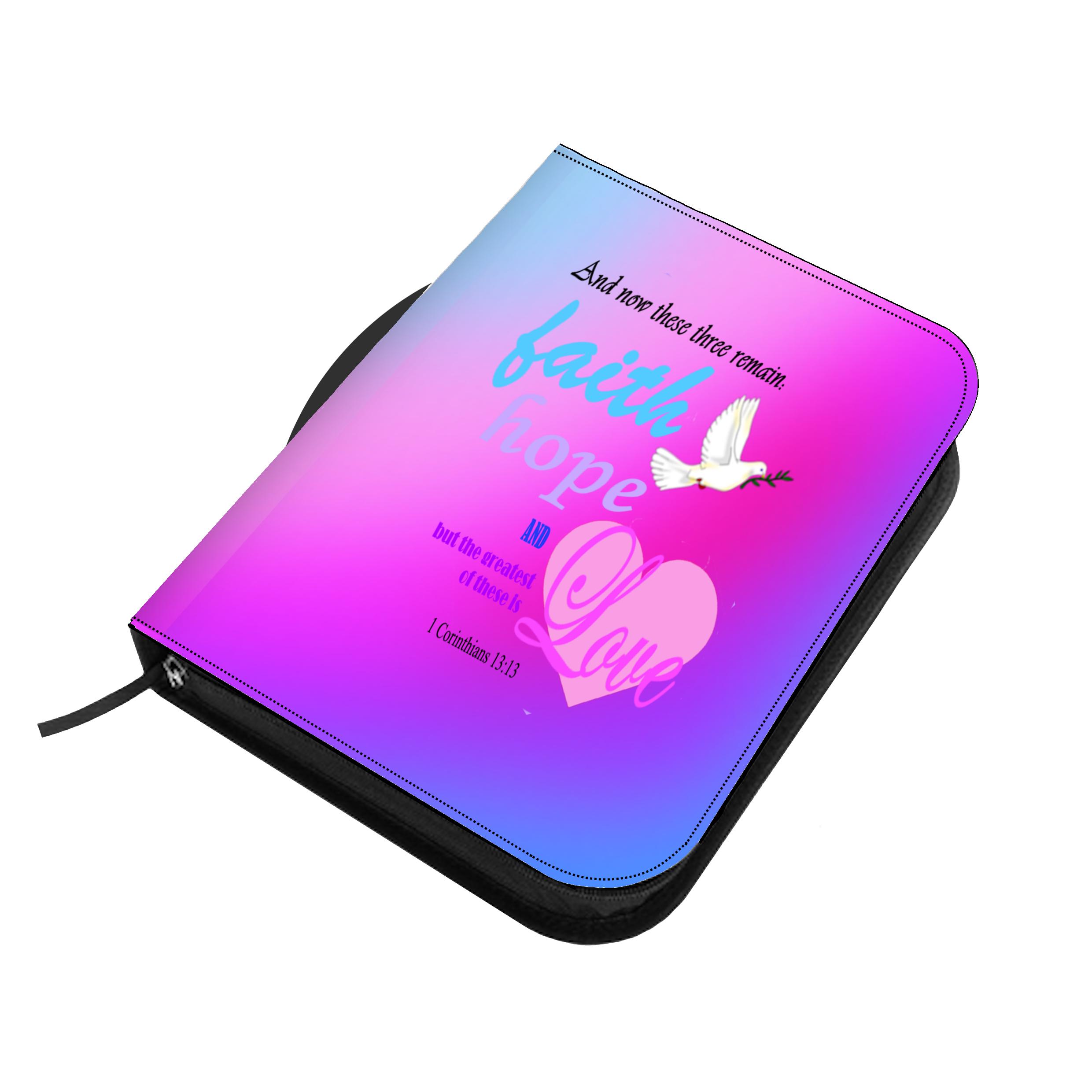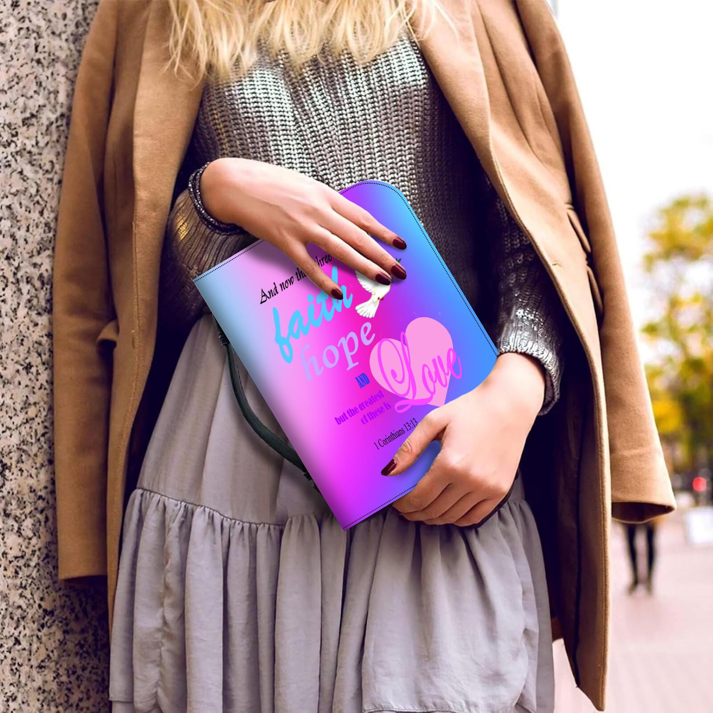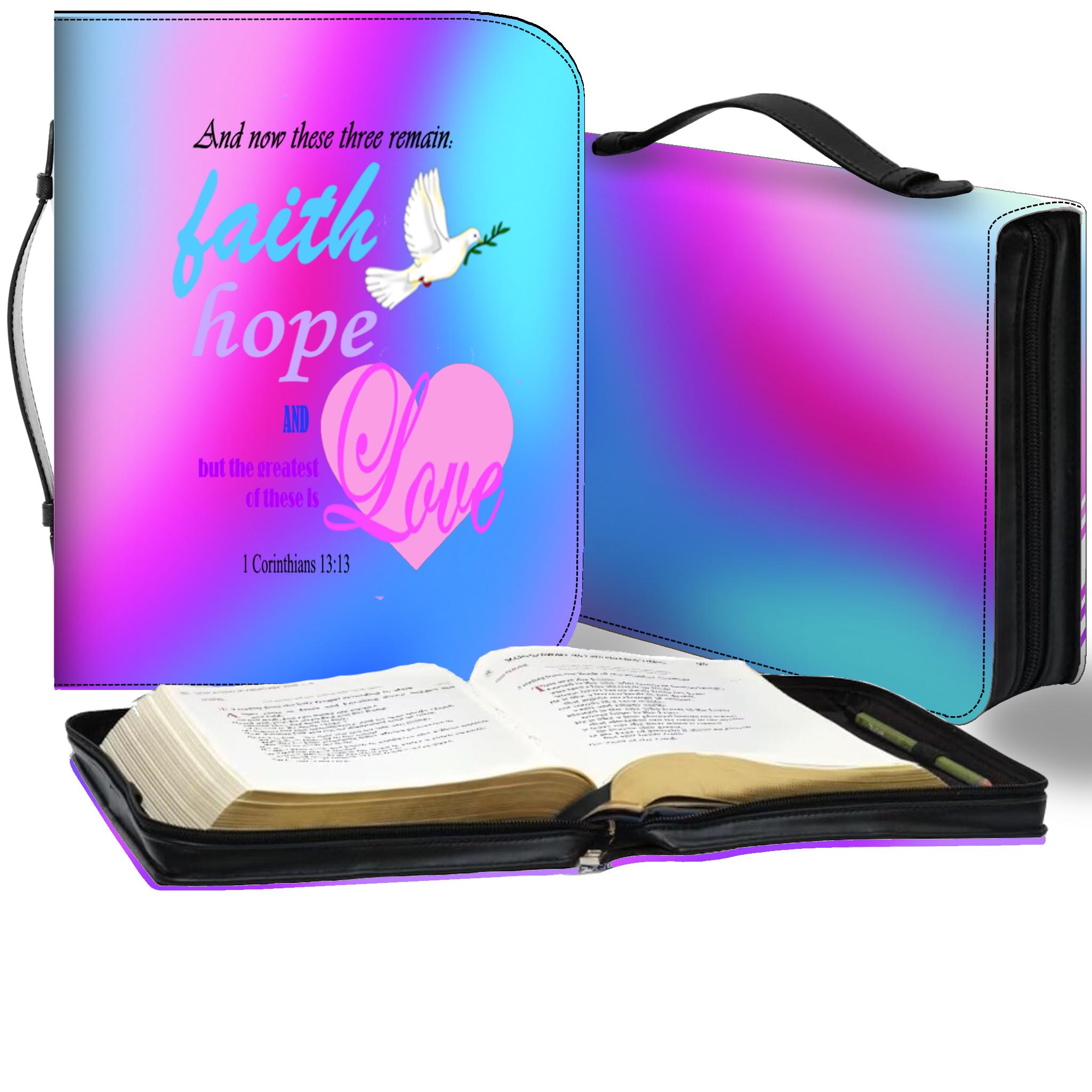 Soft, Cool Colors Bible Cover, 1 Corinthians 13:13 Scripture Quote, Religious Gift for Women, Church Accessory, Faith-Based Journal Cover