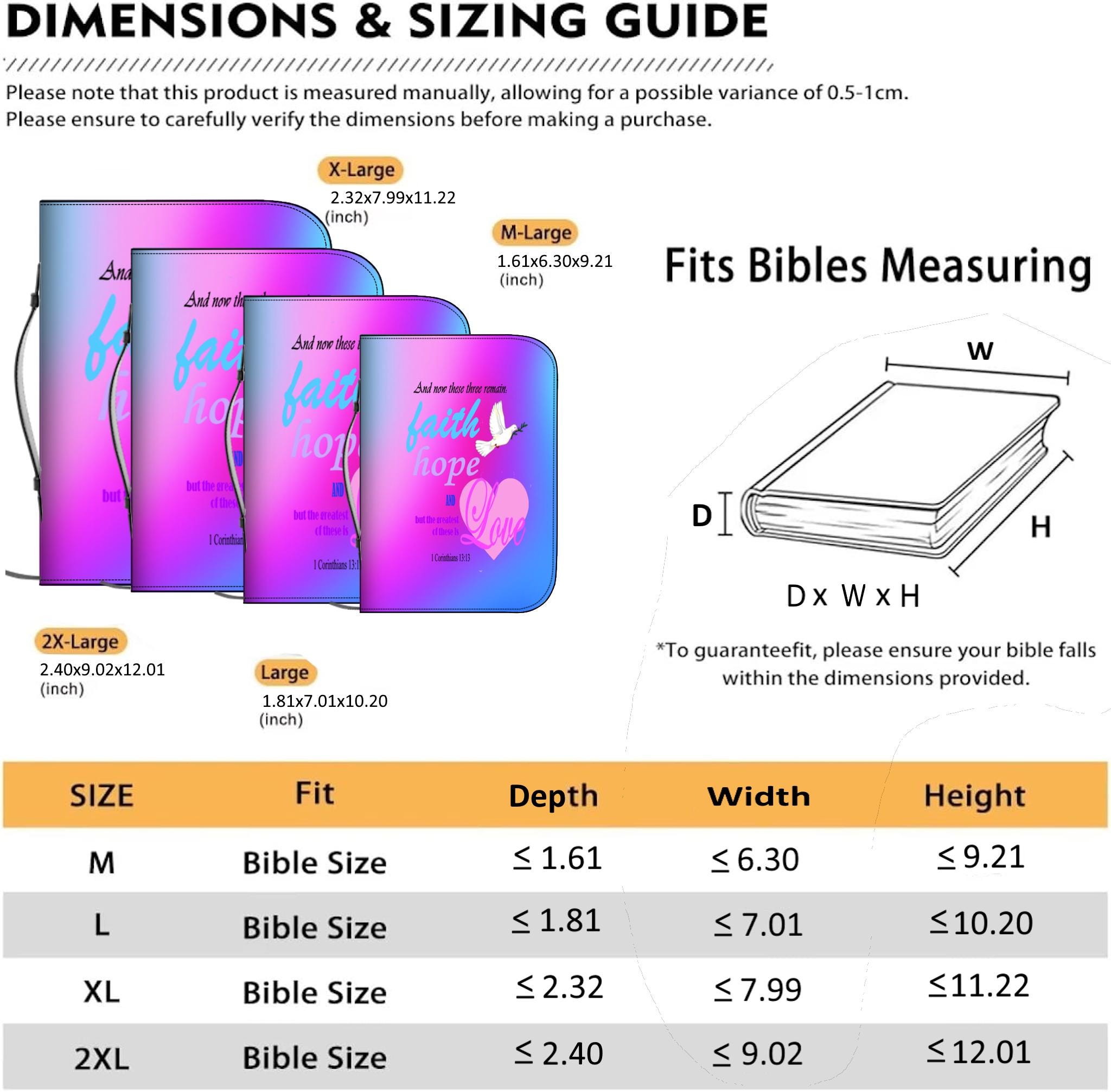 This beautifully designed Bible Cover combines elegance with functionality. Made from 100% PU leather, it offers a luxurious look while being durable and easy to clean. The vibrant colors and inspiring messages make it a perfect accessory for any Christian, enhancing the experience of carrying your sacred texts. Ideal for personal use or a thoughtful gift for friends and family during the holidays, church events, or special occasions like baptisms and confirmations. This Bible Cover will not only protect your Bible but also inspire your faith wherever you go.