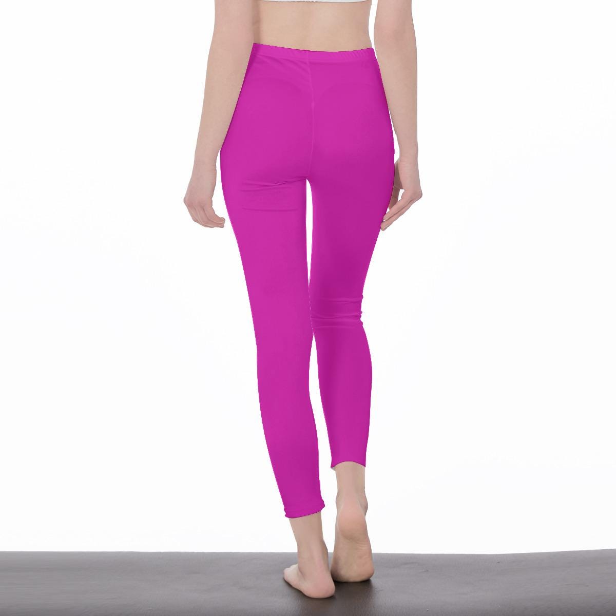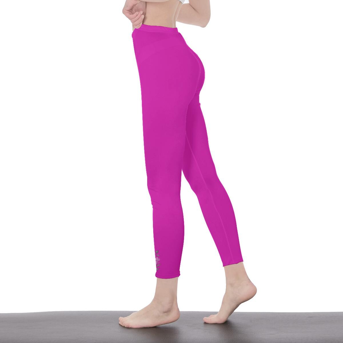 Solid Color Magenta Hot Pink Floral High Waisted Leggings for Women | Soft Yoga Pants Minimal Flower Design | Stylish Workout & Lounge Wear