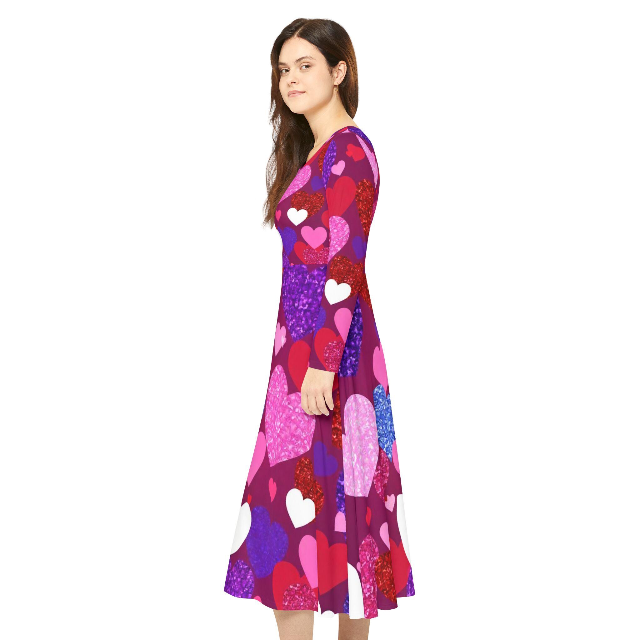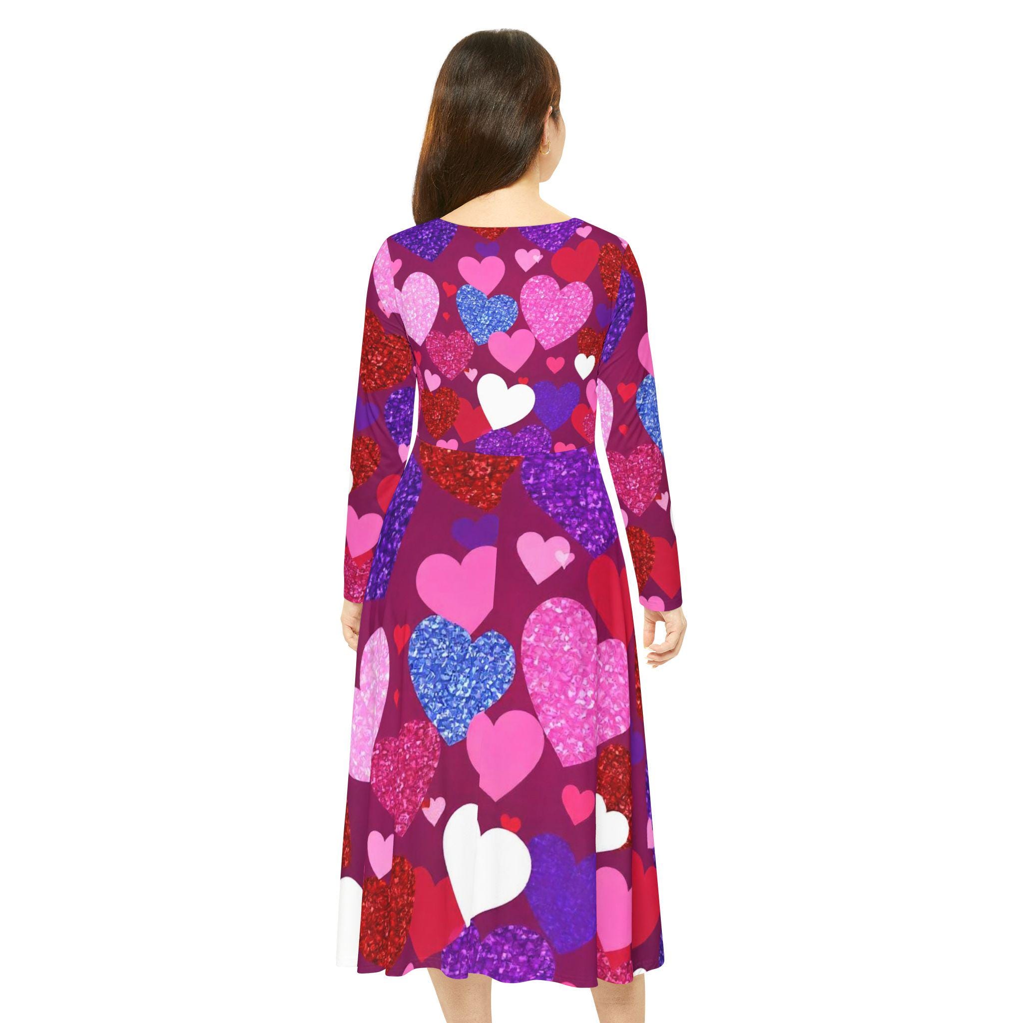 Valentine's Day Heart Print Dance Dress: Long Sleeve Polyester Party Dress