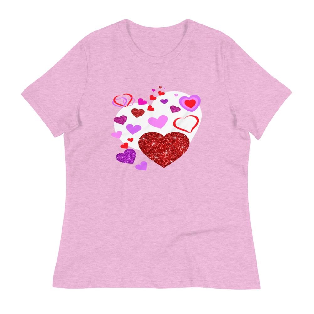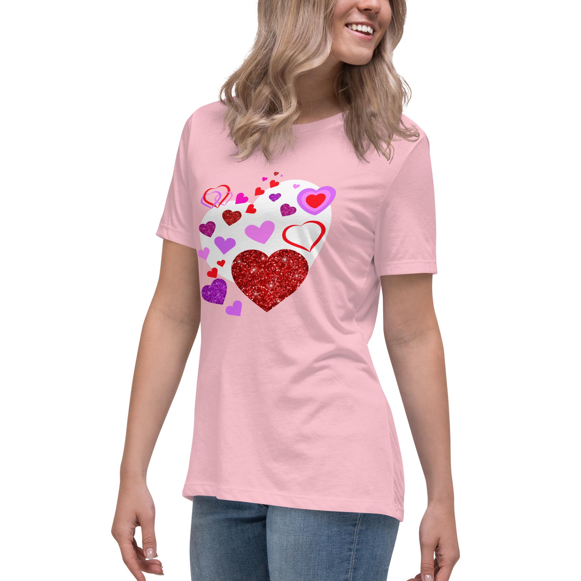 Valentine's Day Pink T-Shirt with Adorable Heart Design - A Sweet Statement Piece! Women's Relaxed T-Shirt