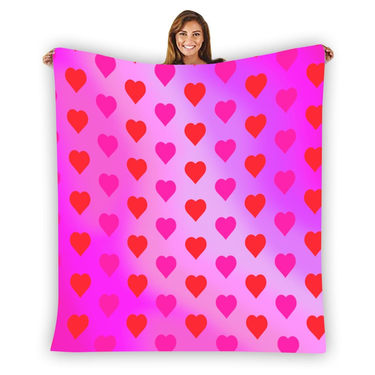 Snuggle up in style with our cute Hearts Polyester Fleece Blanket! This cozy blanket features a beautiful design of heart patterns, transitioning gracefully through vibrant shades of pink. Made from soft, breathable polyester fleece, it offers warmth and comfort perfect for chilly evenings or cozy nights in. Whether draped over your couch, used as a stylish throw on your bed, or taken along for outdoor adventures, this blanket adds a touch of love and elegance to any space. Ideal for weddings, anniversaries, Valentine's Day, or just because, it’s the perfect gift for someone special or a delightful treat for yourself. Embrace the warmth and charm of our hearts design – your new favorite blanket awaits!