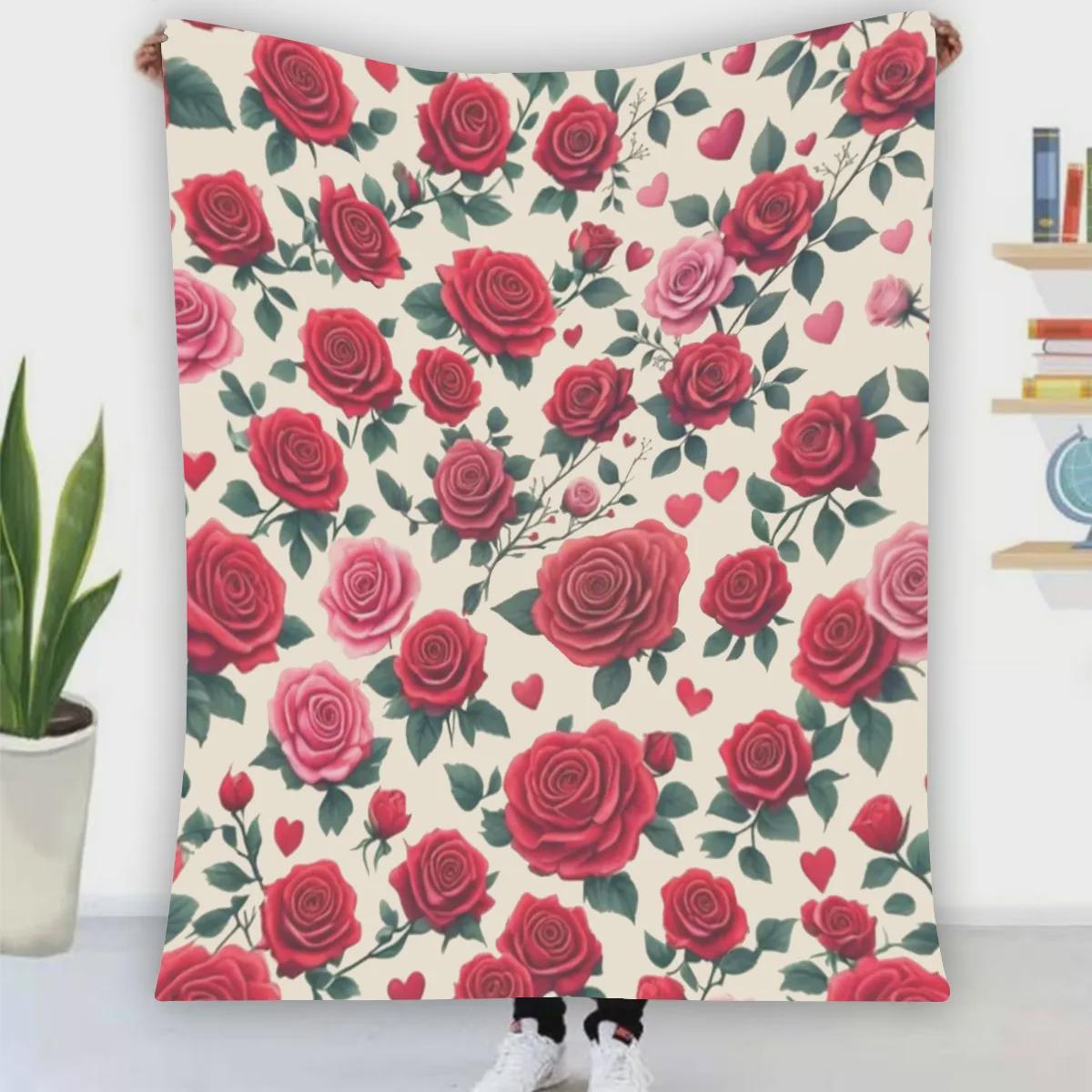 Red Roses Plush Fleece Blanket: Warm Cuddling Throw, Home Decor Bedspread
